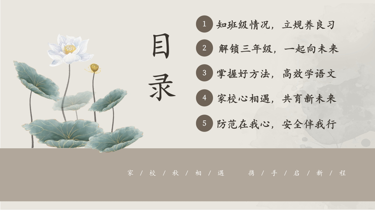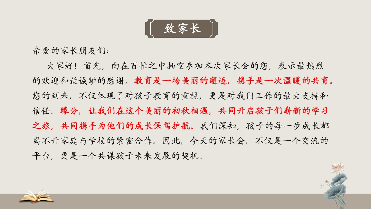 三年级家长会PPTtangqi8811天前发布关注私信73.81MB40页03210 第1页 / 共40页 第2页 / 共40页 第3页 / 共40页 试读已结束,还剩37页,您可下载完整版后进行离线阅读 三年级家长会PPT此内容为付费资源,请付费后查看¥9.9¥19.9VIP会员免费立即购买您当前未登录!建议登陆后购买,可保存购买订单付费资源© 版权声明本站是一个信息分享及获取的平台,不确保部分用户上传资料的来源及知识产权归属,资料由老师投稿,公开渠道整理,网友上传,如果侵犯到您的权益,请联系客服删除THE ENDPPT课件 文本预览 家/校/秋/相/遇携/手/启/新/程秋日家校絮语共绘成长画卷2024秋季三年级家长会汇报人:李老师时间:2024.9 查看更多 收起部分 喜欢就支持一下吧点赞10 分享QQ空间微博QQ好友海报分享复制链接收藏