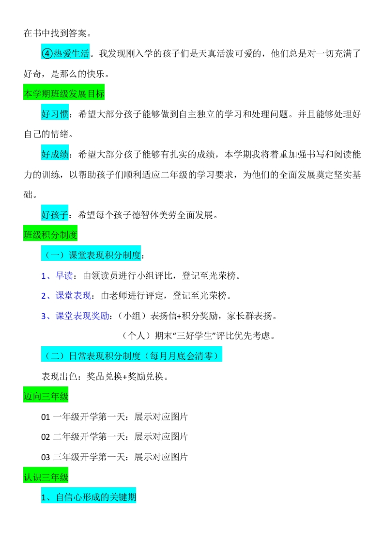 【三上】【英语】【承上启下同心同行】开学家长会-发言稿目录:01班级情况介绍02英语学习内容03英语学习五步法04同心同行育未来班级情况介绍我叫,是我们三()班老师,从事教师职业己经有x年,有着丰富的教学经验。接下来的5年,我会尽己所能,陪伴孩子们成长。用心浇灌,陪伴他们从一棵幼苗,成长为挺立的小树;从牙牙学语的稚童,成长为x学校的大美少年!我的教育理念在小学阶段,孩子的童年只有一次,很是珍贵,我个人还是希望他们能够拥有一个快乐的童年,德智体美劳全面发展。我想在座的家长或多或少都有一些自己的教育理念:望子成龙成凤:黄金棍下出好人;“放养型”;“内卷型”;顺其自然型…我简单说说我的教育理念吧。我觉得在小学阶段,孩子的童年只有一次,很是珍贵,我个人还是希望他们能够拥有一个快乐的童年,德智体美劳全面发展。具体而言,我希望我带出来的孩子,能拥有如下“四项热爱”。①热爱朗读。朗读,是语言的艺术,也是情感的流露。它不仅能够锻炼我们的口齿清晰,提升语言表达能力,更能深入地理解文本,增强语感。②热爱运动。生命在于运动。我希望每个孩子都能把拥有健康的身体,强健的体魄,放在第一位。③热爱阅读。脚步不能丈量的地方,阅读可以。生活中所有的烦恼、焦虑,都能