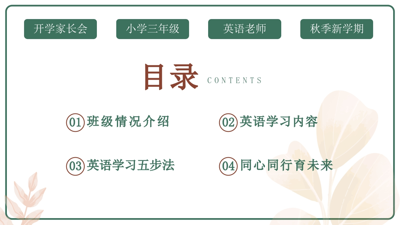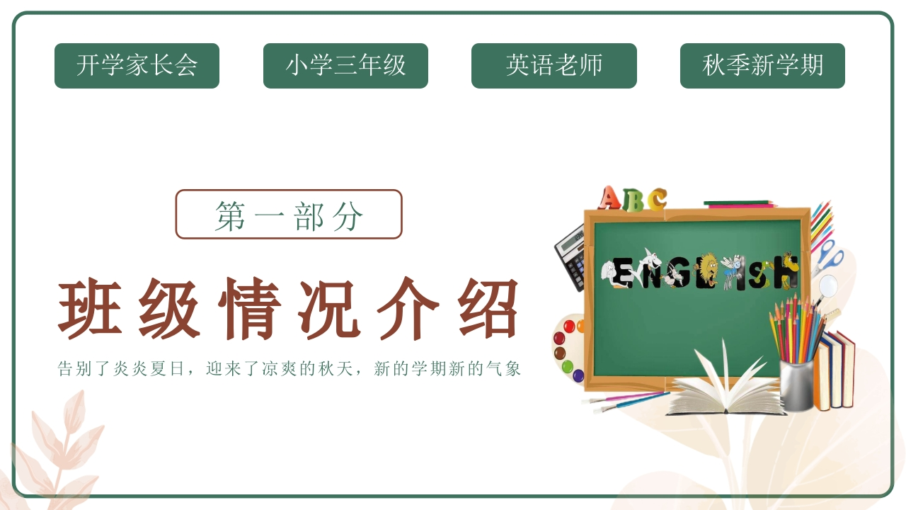 【三上】【英语】【承上启下同心同行】开学家长会1tangqi8812天前发布关注私信43.89MB44页03413 第1页 / 共44页 第2页 / 共44页 第3页 / 共44页 试读已结束,还剩41页,您可下载完整版后进行离线阅读 【三上】【英语】【承上启下同心同行】开学家长会1此内容为付费资源,请付费后查看¥9.9¥19.9VIP会员免费立即购买您当前未登录!建议登陆后购买,可保存购买订单付费资源© 版权声明本站是一个信息分享及获取的平台,不确保部分用户上传资料的来源及知识产权归属,资料由老师投稿,公开渠道整理,网友上传,如果侵犯到您的权益,请联系客服删除THE ENDPPT课件 文本预览 开学家长会小学三年级英语老师秋季新学期承上启下同心同行Englisl7/28告别了炎炎夏日,迎来了凉爽的秋天,新的学期新的气象汇报人:xxx!日期:2024年09月Student 查看更多 收起部分 喜欢就支持一下吧点赞13 分享QQ空间微博QQ好友海报分享复制链接收藏