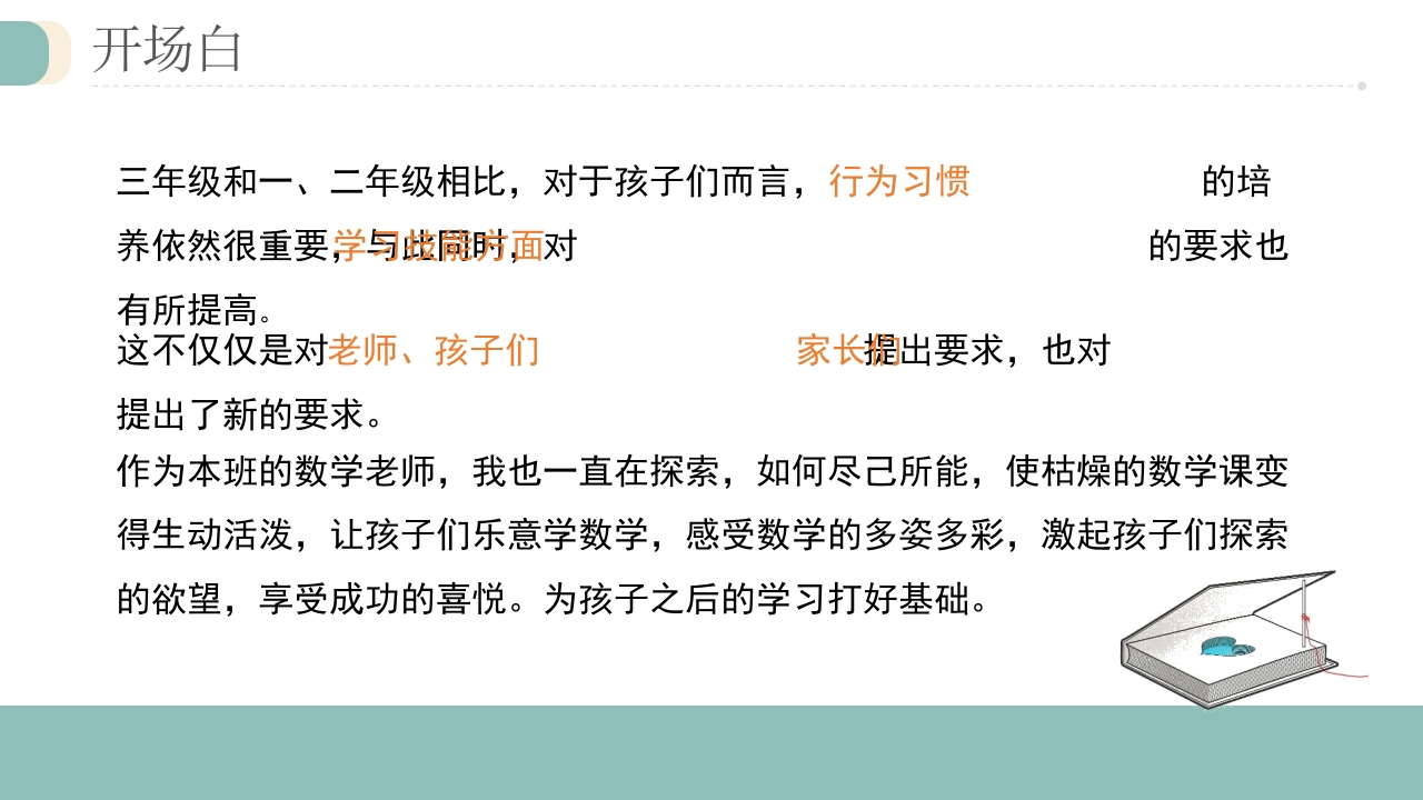 【三上】【人教版数学】【洞悉变化共助成长】开学家长会课件tangqi8812天前发布关注私信10.64MB62页02912 第1页 / 共62页 第2页 / 共62页 第3页 / 共62页 试读已结束,还剩59页,您可下载完整版后进行离线阅读 【三上】【人教版数学】【洞悉变化共助成长】开学家长会课件此内容为付费资源,请付费后查看¥9.9¥19.9VIP会员免费立即购买您当前未登录!建议登陆后购买,可保存购买订单付费资源© 版权声明本站是一个信息分享及获取的平台,不确保部分用户上传资料的来源及知识产权归属,资料由老师投稿,公开渠道整理,网友上传,如果侵犯到您的权益,请联系客服删除THE ENDPPT课件 文本预览 洞悉变化共助成长三上数学开学家长会(人教版三年级18班班主任 查看更多 收起部分 喜欢就支持一下吧点赞12 分享QQ空间微博QQ好友海报分享复制链接收藏
