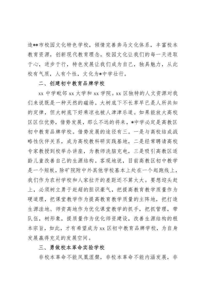 校长汇报履行使命、践行誓言。着力创建特色学校、品牌学校、实验学校、示范学校、先进学校各位领导:我县教育振兴计划实施以来,xx县xx中学在局领导的亲切关怀下,以时不我待、只争朝夕的精神,乘势而上,贴近校情,积极谋划,主动对接,打出了一套自己的组合拳,唱响了一曲嘹亮的振兴歌。我们的口号是:教育振兴做先锋,先锋我是排头兵。Xx中学全体教职工有信心有能力履行教育振兴的使命,践行排头一兵的誓言。我们的具体做法是:一、打造校园文化特色学校我们着手构建以社会主义核心价值观为主线,以中国传统文化为主轴,以书香校园为特色,以奔马文化为内涵的校园文化体系。学校多措并举,一是精心制作了近1000平方米的文化墙,全方位包装,全视野覆盖,制作之精美,主题之深刻,特色之鲜明令全校师生耳目一新。二是建立健全打造书香校园的长效机制,使阅读成为师生自觉自律的一种习惯,让经典成为师生成功成长的良师益友。三是坚持开展“双爱好”活动。阳光体育活动持久深入,文艺社团建设全面开花;学生身体素质与人文素养同步提高,师生幸福指数大幅提高。“腹有诗书气自华”,在历史长廊面前沉思,在文学长廊面前吟咏,在科技长廊面前畅想,与先贤对话,与大雅同声,与美丽为友,*中学师生用文化为自己建构了一座美丽的伊甸园。今后我们的目标是打