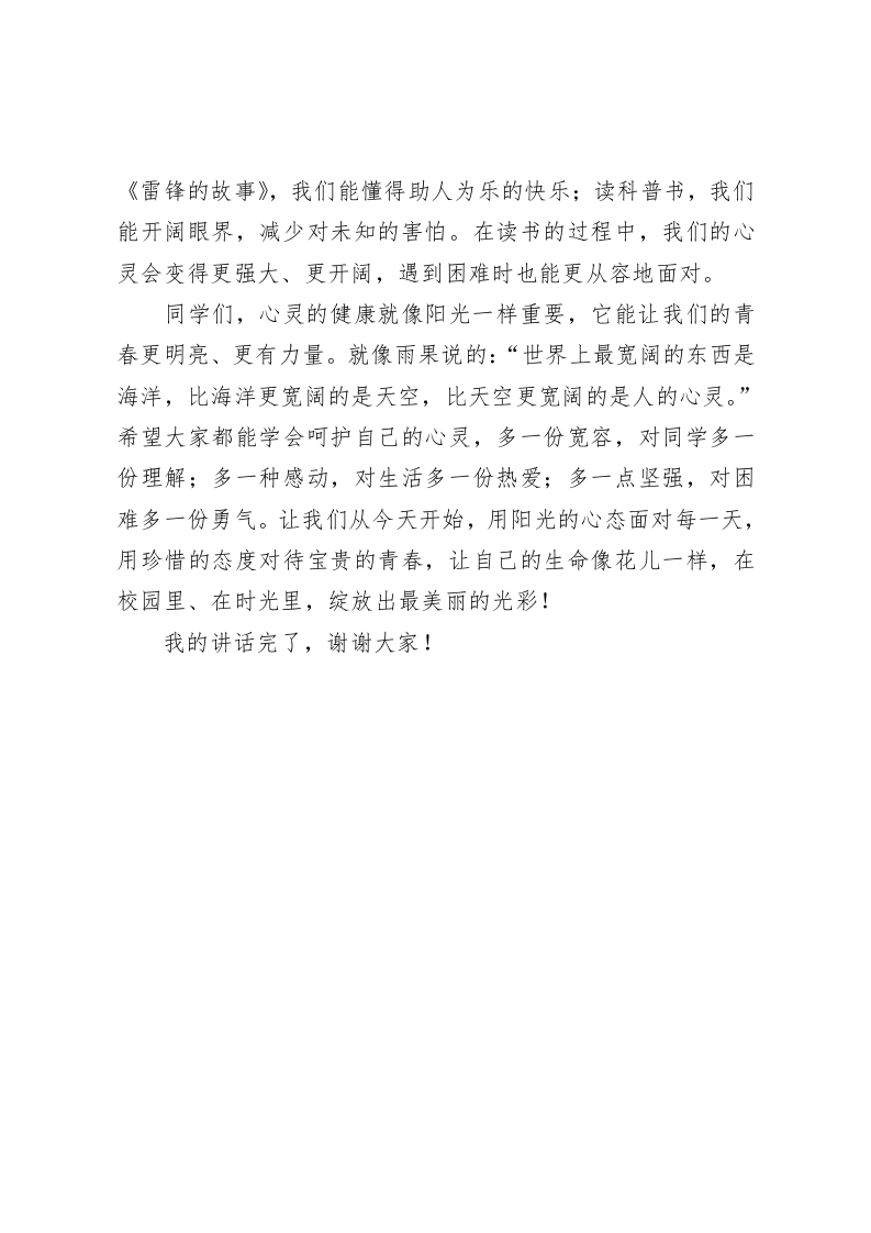心理健康教育,校长国旗下讲话:呵护阳光心灵,绽放青春光彩此内容为付费资源,请付费后查看