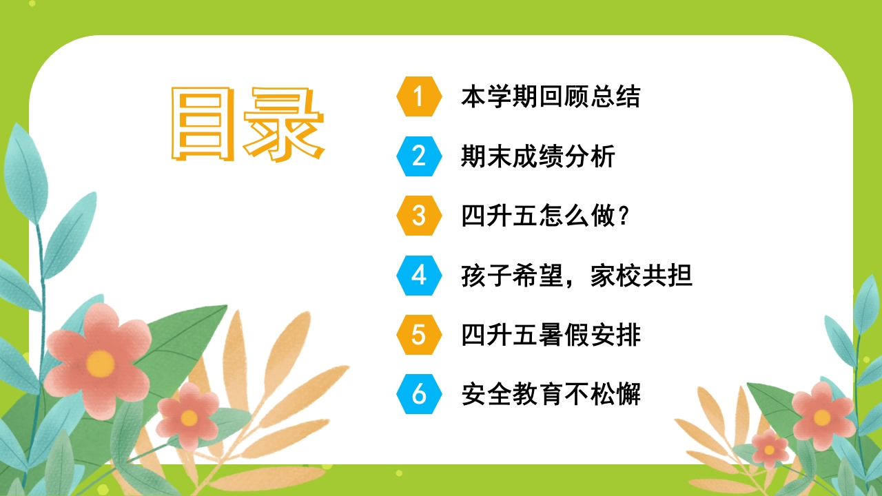 【四下】【数学】【孩子,我们共同的希望】期末家长会(北师大版)tangqi8811天前发布关注私信8.73MB67页0315 第1页 / 共67页 第2页 / 共67页 第3页 / 共67页 试读已结束,还剩64页,您可下载完整版后进行离线阅读 【四下】【数学】【孩子,我们共同的希望】期末家长会(北师大版)此内容为付费资源,请付费后查看¥9.9¥19.9VIP会员免费立即购买您当前未登录!建议登陆后购买,可保存购买订单付费资源© 版权声明本站是一个信息分享及获取的平台,不确保部分用户上传资料的来源及知识产权归属,资料由老师投稿,公开渠道整理,网友上传,如果侵犯到您的权益,请联系客服删除THE ENDPPT课件 文本预览 四年级下学期期末家长会孩子,我们共同的希望☆汇报人:XXX时间:202x-06 查看更多 收起部分 喜欢就支持一下吧点赞5 分享QQ空间微博QQ好友海报分享复制链接收藏