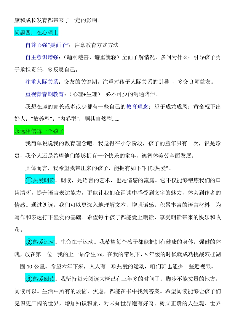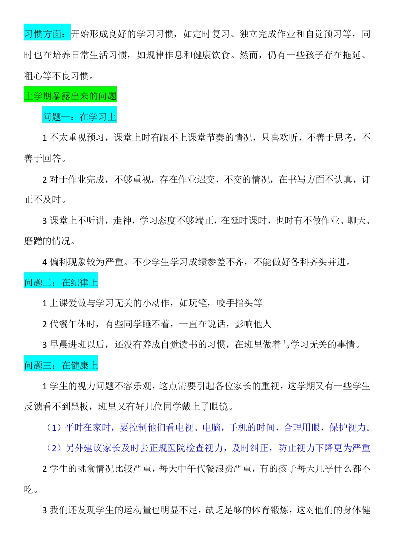 【四上】【英语】【浸润成长,承载未来】开学家长会发言稿目录:1班级情况介绍2英语学习内容3英语学习方法4用爱承载未来班级情况介绍回顾暑假生活家长如何帮助孩子收心?(总结、调整、谈心、计划和准备)首先,孩子在暑假生活和学习状况和孩子们进行总结。然后,调整好孩子的作息时间和饮食生活习惯。接着,和孩子谈谈心,了解孩子对新学期的打算。最后,制定新学期计划和准备好学具。让孩子尽快转换角色,从暑假收心,适应学校生活。认识我们的孩子我们的孩子我们班男生22人女生19人,全班共计41位同学。我们班的状况学习情况:他们已掌握了一定的学科基础知识,思维能力也在提升。部分学生感到压力增大。同时,学习态度、习惯以及自主学习能力也在逐步培养中,同伴关系和社交环境对学习产生着显著影响。行为方面:展现出更多的独立性和责任感,能够自觉遵守规则并积极参与集体活动。然而,仍有部分孩子在自我控制和情绪管理方面需要提升。此外,同伴关系对他们的影响逐渐增强,良好的社交技能变得愈发重要。