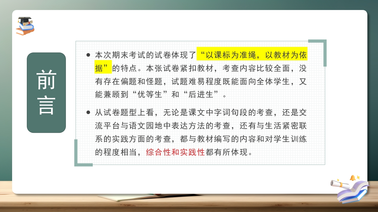 【五下】【语文】【鉴往知来行方至远】期末质量分析tangqi8811天前发布关注私信44.66MB23页0356 第1页 / 共23页 第2页 / 共23页 第3页 / 共23页 试读已结束,还剩20页,您可下载完整版后进行离线阅读 【五下】【语文】【鉴往知来行方至远】期末质量分析此内容为付费资源,请付费后查看¥9.9¥19.9VIP会员免费立即购买您当前未登录!建议登陆后购买,可保存购买订单付费资源© 版权声明本站是一个信息分享及获取的平台,不确保部分用户上传资料的来源及知识产权归属,资料由老师投稿,公开渠道整理,网友上传,如果侵犯到您的权益,请联系客服删除THE ENDPPT课件 文本预览 厚博鉴往知来:而而约行方至远薄发取202x一2022×学年度五年级语文下册期末检测质量分析O 查看更多 收起部分 喜欢就支持一下吧点赞6 分享QQ空间微博QQ好友海报分享复制链接收藏