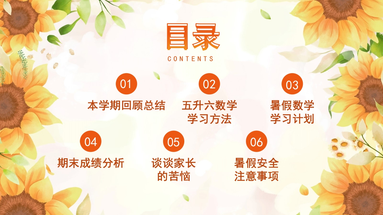 【五下】【数学】【让爱更有智慧】期末家长会tangqi8811天前发布关注私信6.35MB58页0335 第1页 / 共58页 第2页 / 共58页 第3页 / 共58页 试读已结束,还剩55页,您可下载完整版后进行离线阅读 【五下】【数学】【让爱更有智慧】期末家长会此内容为付费资源,请付费后查看¥9.9¥19.9VIP会员免费立即购买您当前未登录!建议登陆后购买,可保存购买订单付费资源© 版权声明本站是一个信息分享及获取的平台,不确保部分用户上传资料的来源及知识产权归属,资料由老师投稿,公开渠道整理,网友上传,如果侵犯到您的权益,请联系客服删除THE ENDPPT课件 文本预览 五年级下学期期末家长会让爱,更有智慧主讲人:XXX主讲时间:202x.06 查看更多 收起部分 喜欢就支持一下吧点赞5 分享QQ空间微博QQ好友海报分享复制链接收藏