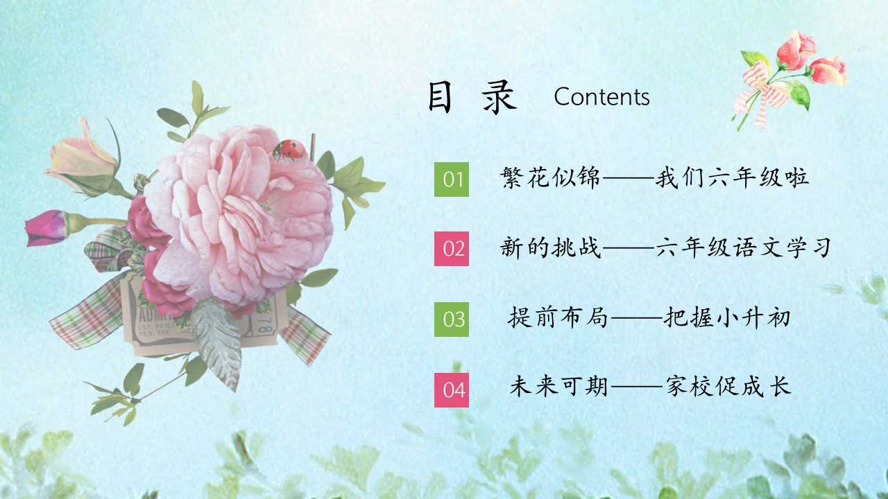 【六上】【语文】【繁花似锦未来可期】开学家长会课件tangqi884天前发布关注私信74.62MB69页03710 第1页 / 共69页 第2页 / 共69页 第3页 / 共69页 试读已结束,还剩66页,您可下载完整版后进行离线阅读 【六上】【语文】【繁花似锦未来可期】开学家长会课件此内容为付费资源,请付费后查看¥9.9¥19.9VIP会员免费立即购买您当前未登录!建议登陆后购买,可保存购买订单付费资源© 版权声明本站是一个信息分享及获取的平台,不确保部分用户上传资料的来源及知识产权归属,资料由老师投稿,公开渠道整理,网友上传,如果侵犯到您的权益,请联系客服删除THE ENDPPT课件 文本预览 繁花似锦未来可期41个你,每一个你都很重要六(1)班=学生+老师+家长六上语文家长会班主任:刘老师 查看更多 收起部分 喜欢就支持一下吧点赞10 分享QQ空间微博QQ好友海报分享复制链接收藏