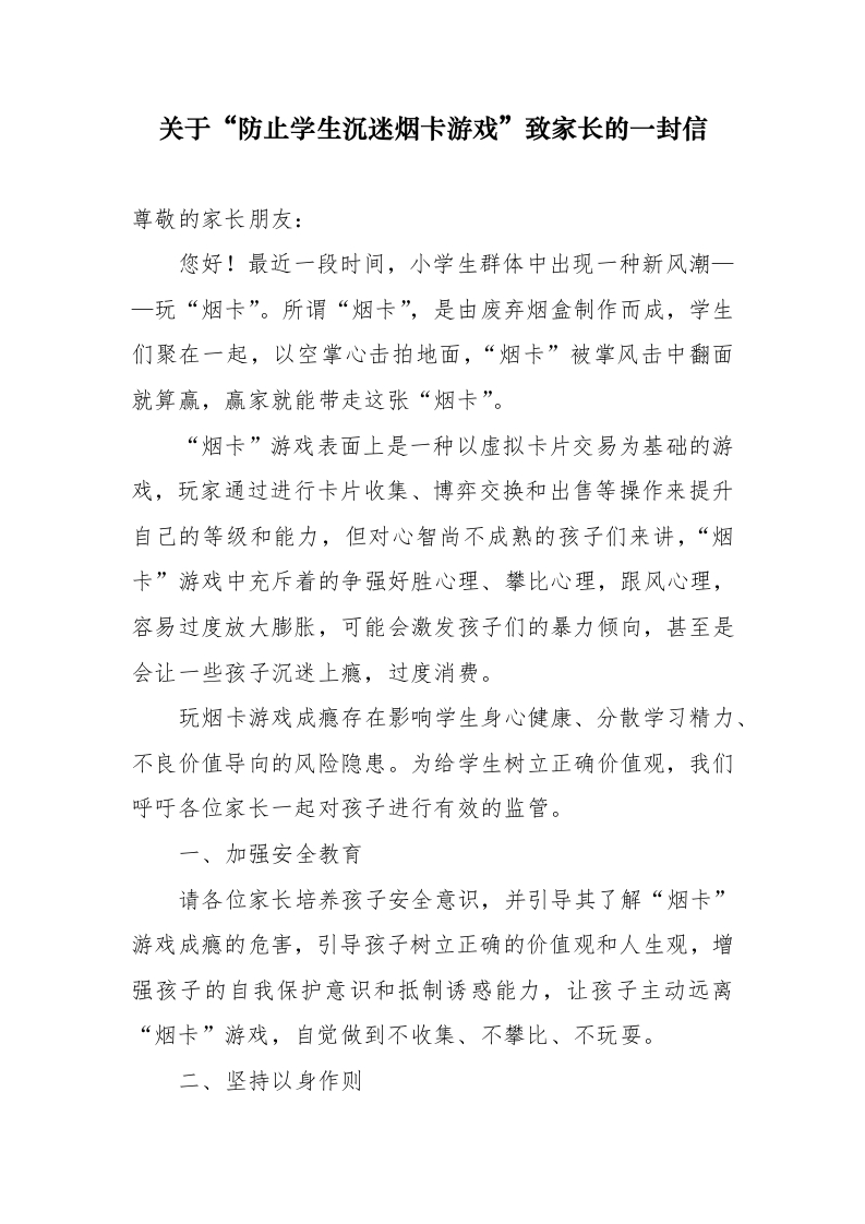 关于“防止学生沉迷烟卡游戏”致家长的一封信此内容为免费资源,请登录后查看