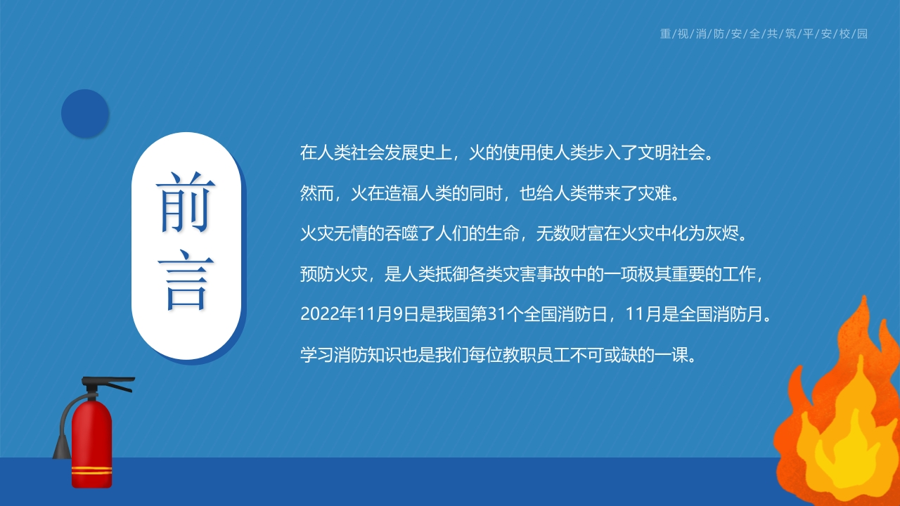 【通用】【秋季】校园消防安全日消防知识教育主题班会:全民消防、生命至上——安全用火用电tangqi886天前发布关注私信1.56MB56页0305 第1页 / 共56页 第2页 / 共56页 第3页 / 共56页 试读已结束,还剩53页,您可下载完整版后进行离线阅读 【通用】【秋季】校园消防安全日消防知识教育主题班会:全民消防、生命至上——安全用火用电此内容为付费资源,请付费后查看¥9.9¥19.9VIP会员免费立即购买您当前未登录!建议登陆后购买,可保存购买订单付费资源© 版权声明本站是一个信息分享及获取的平台,不确保部分用户上传资料的来源及知识产权归属,资料由老师投稿,公开渠道整理,网友上传,如果侵犯到您的权益,请联系客服删除THE END学校教务教研资料 文本预览 重/视/消/防/安/全/共/筑/平/安/校/园全民消防、生命里上·安全用火用电校园11月9日全国消防安全日消防安全教育防安全 查看更多 收起部分 喜欢就支持一下吧点赞5 分享QQ空间微博QQ好友海报分享复制链接收藏