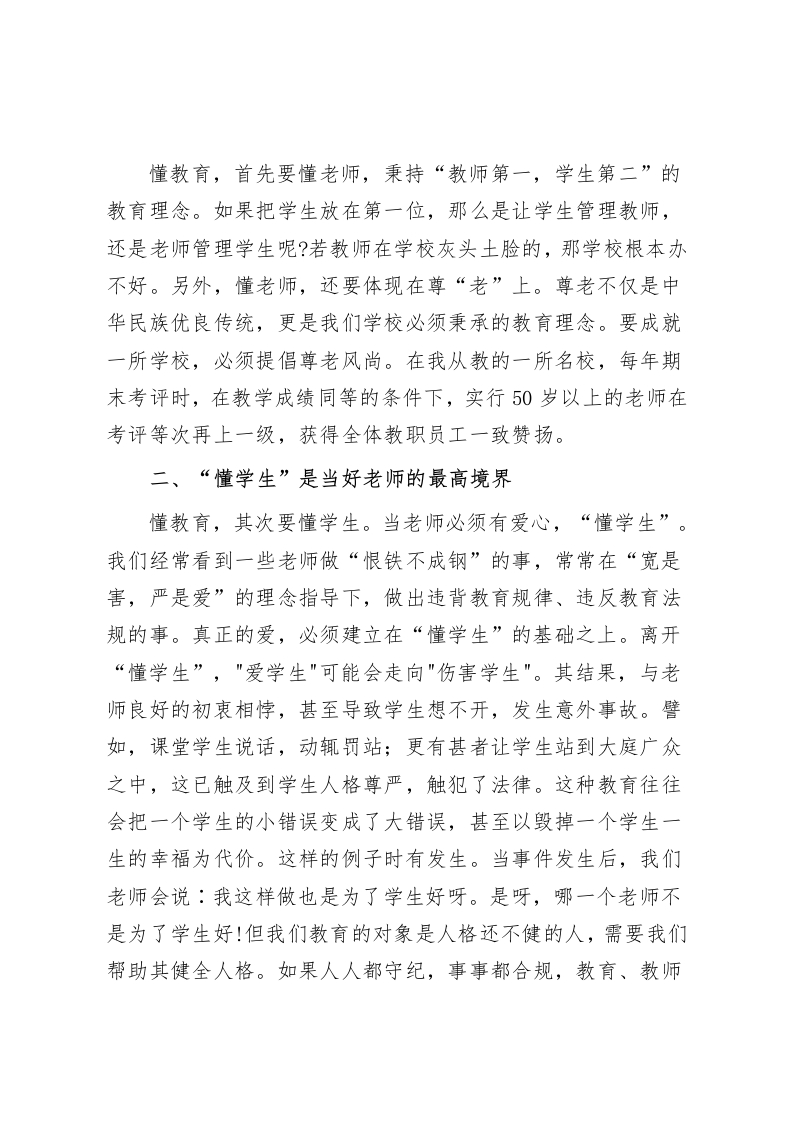 校长竞聘演讲懂教师,懂学生,懂学生尊敬的评委,各位精英大家好很荣幸参加今天XX学校长竞聘演讲。这对我来说,与其说竞聘,倒不如说是来交流学习。因为我今年已经xx岁了,面对日新月异的现代科技文化,心有而力不足。我唯一的优势就是从教的时间长,经验丰富,既爱党爱国爱教爱学生,又懂教师懂学生懂教学。下面,我就把自己对提高综合素质教育改革的认识,以及从教xx年的经验与大家分享。解放军的环台军演具有实战意义,令无数国人为之扬眉吐气。让我们看到了祖国无比强大的一面。也说明完成祖国统一大业只是时间问题。从中,使我们深刻领悟到有国才有家。只有国家强大了,国民的权益才有保障。因此,我们一切教育都必须以爱国爱党为基础。教育必须为党为国家服务。办校教学必须牢固树立爱国爱党思想。其次,作为一校之长,还必须懂教育。一、作为学校管理者要懂教师,方能成就学校的发展。