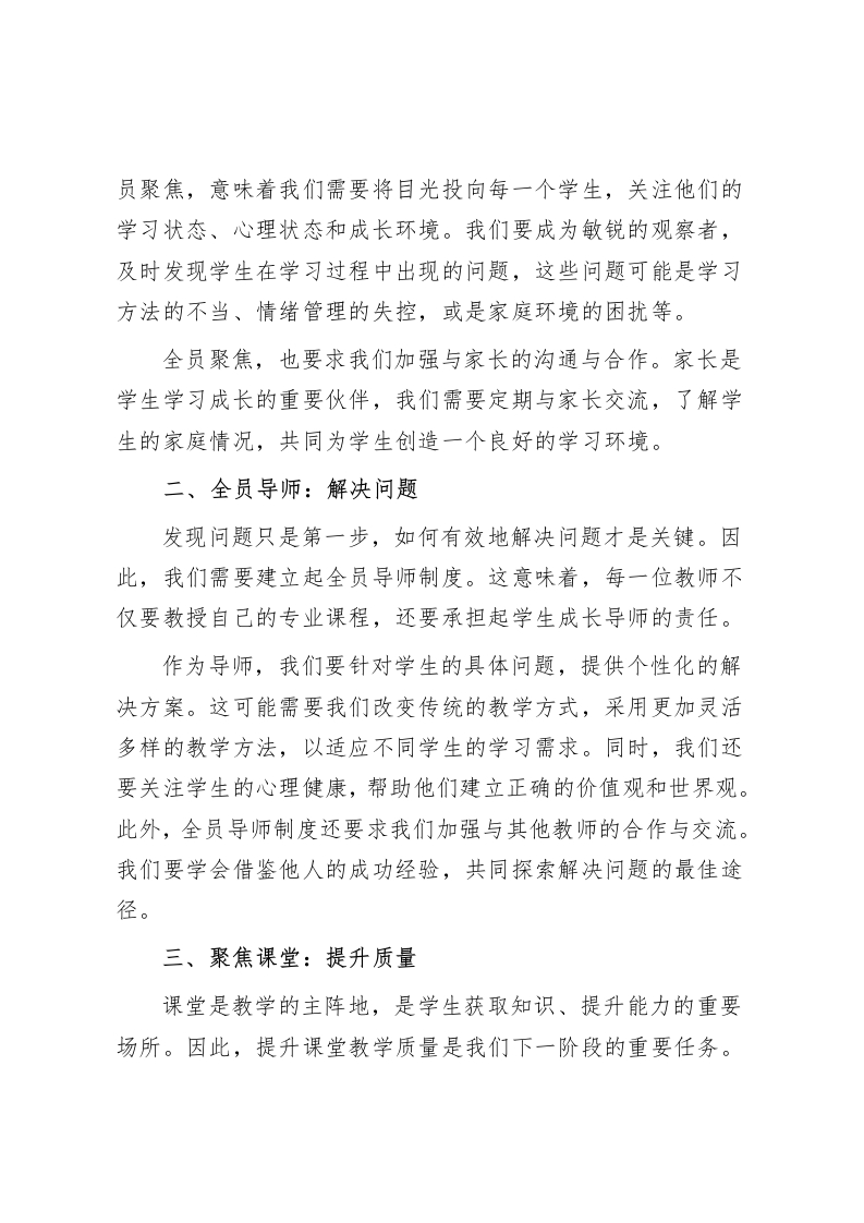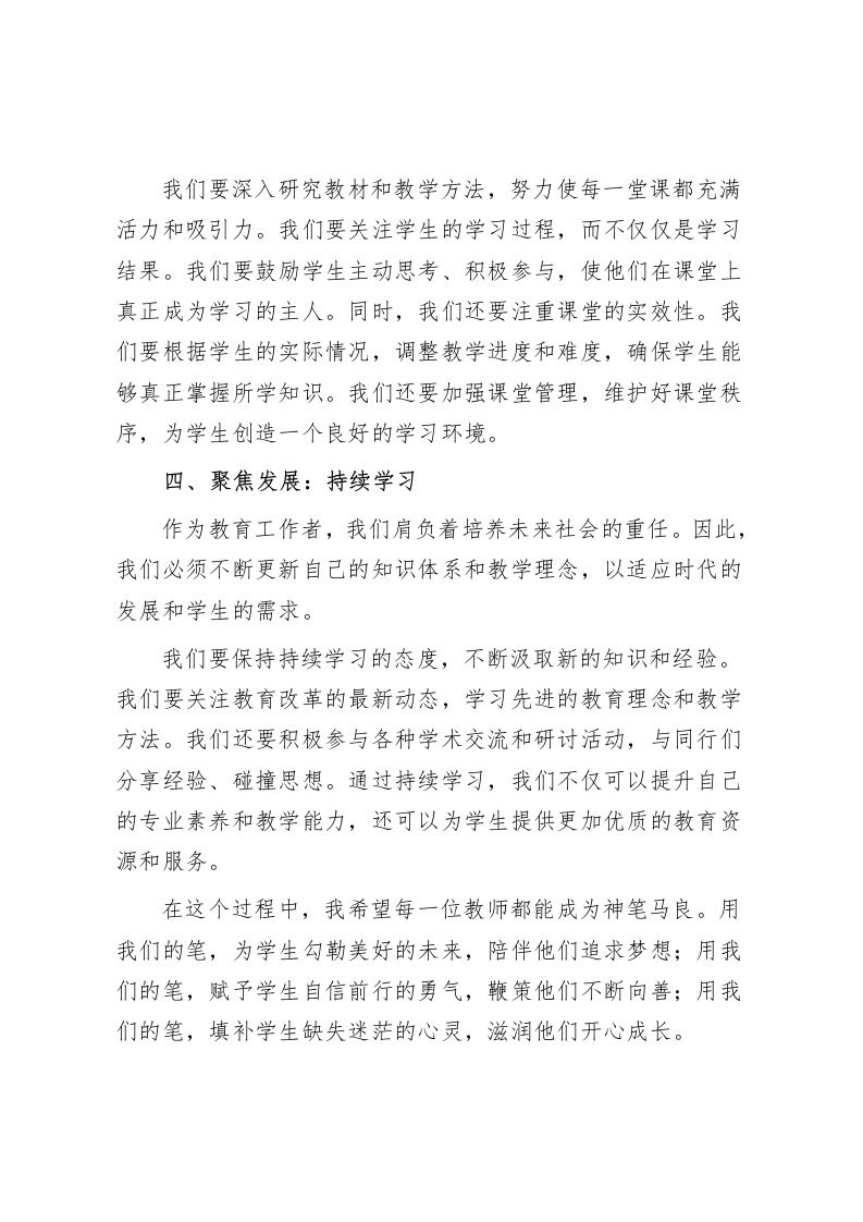 校长在教学成绩质量分析会上讲话让我们一起努力,为学生的成长和未来贡献我们的力量尊敬的老师们,亲爱的同仁们:大家好!感谢大家在忙碌的教学工作中抽出时间参加这次教学成绩质量分析会。首先,我想说,教育是一项神圣而伟大的事业。我们每一位教师,都是学生成长道路上的引路人,是学生心灵的塑造者。正如韩愈所说:“师者,所以传道授业解惑也。”我们的职责不仅仅是传授知识,更是要引导学生树立正确的世界观、人生观和价值观。在我看来,师生之间的关系,就像是一场美丽的遇见。我们是有缘人,因为我们有幸在教育的道路上相遇,共同走过一段难忘的时光。而我希望,我们不仅能成为彼此的良师益友,更能成为彼此的开心果,共同分享教育的快乐和成果。为此,我提出以下四个方面的重点工作要求。一、全员聚焦:发现问题教育是一个系统工程,它涉及学生、家长、学校和社会等多个方面。我们每一位教师,都是这个系统中的关键一环。全