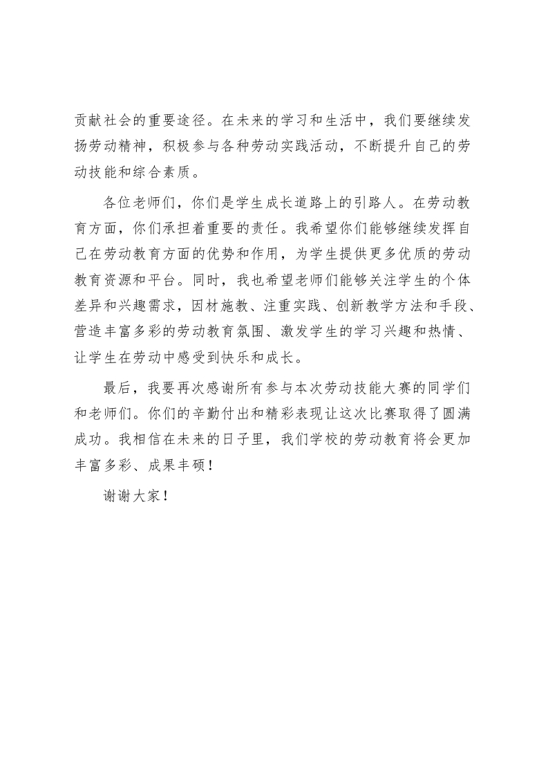 校长在劳动技能大赛上讲话劳动,是人类文明进步的阶梯,是创造美好生活的源泉此内容为付费资源,请付费后查看