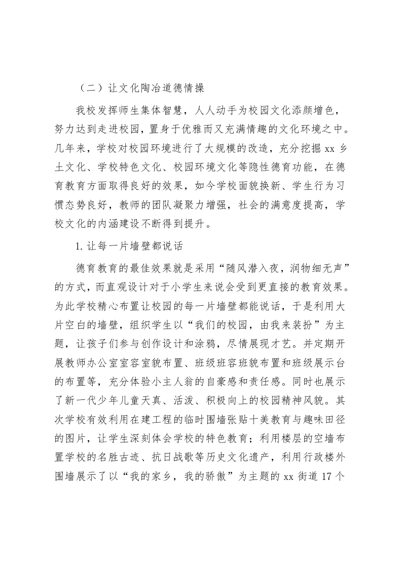 新优质学校创建汇报,校长发言追求内涵发展上求突破尊敬的各位领导、同仁:近年来,xx学校在上级组织的领导和关怀下,与时俱进,开拓创新,结合学校工作特点,切实开展新优质学校创建工作。在创建过程中,学校坚持“让孩子健康快乐成长”的办学理念,坚持以育人为根本,教学为中心,始终以质量求生存,以特色求发展的办学思想,以全面推进学校规范化、标准化、特色化为目标。现将有关创建情况汇报如下:(一)让理念成为教育航标建设一所精品学校,离不开先进的办学理念和正确的办学方向。学校“给每个孩子留下温暖的记忆”这一先进理念,像一面旗帜引领学校跨跃前进。学校秉承“求实求真合作创造”的校训,以“阳光活力优雅和谐”为校风,培养“探索不止寓教于乐”的教风和“踏实无华智慧求新”的学风,努力实现“办学条件高起点,学校文化高品位,学校管理高层次,教师队伍高素质,课堂教学高效率,全面育人高质量”的办学目标。通过重建学校精神文化、制度文化、教师文化、课程文化、学生文化和物质文化,追求内涵发展上求突破,创设让社会满意、家长放心、教师舒心、学生称心的现代优质学校。