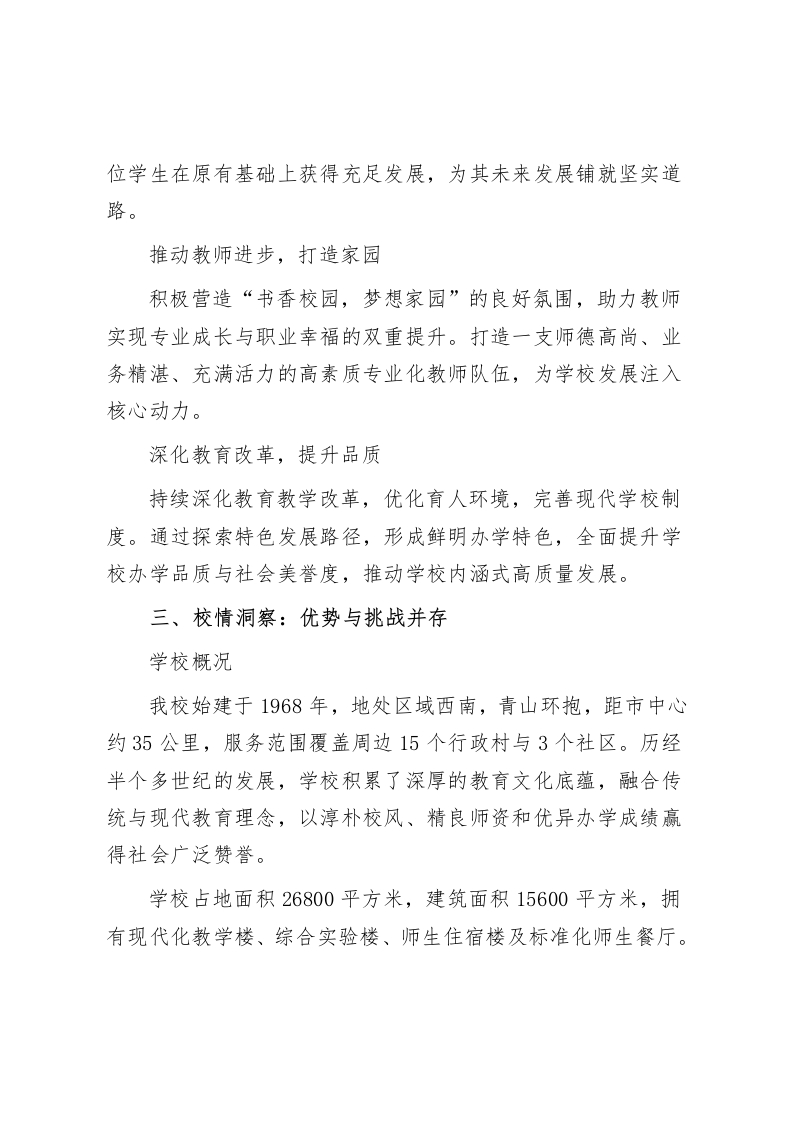 学校新优质教育学校创建实施方案(2025年订)在当今教育格局不断革新、追求高质量发展的时代背景下,我校肩负使命,积极探索契合教育现代化需求、具备区域示范效应的发展路径,致力于打造一所令人民满意的优质教育特色学校。一、理念领航:秉持初心,育人为先以全面贯彻党的教育方针为基石,坚定不移地将立德树人作为根本任务。聚焦以人为本理念,全方位提升学生综合素养,助力其在知识、品德、能力等多维度全面发展;同时,为教师专业成长搭建广阔平台,促进其实现职业理想与个人价值。坚持依法办学、依法治校原则,推进学校治理体系与治理能力现代化进程,运用“整合资源、发扬优势、提升形象、打造特色”的发展策略,为培养全面发展的社会主义建设者和接班人筑牢根基。二、核心主题:多元发展,铸就特色关注学生成长,成就梦想深度聚焦每一位学生的独特需求,充分挖掘其学习潜能,激发创新精神。以学生的终身发展和幸福人生为导向,确保每