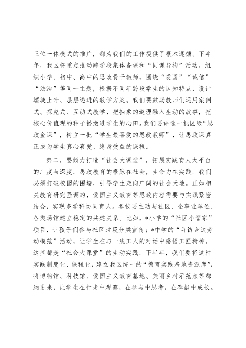 在全区2025年下半年中小学德育工作推进会议上的讲话此内容为付费资源,请付费后查看