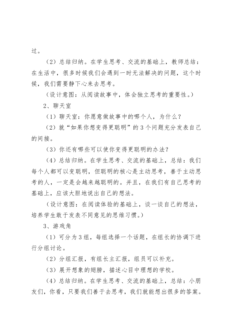 二年级心理健康教案:我有不同意见一、设计背景二年级的学生已经建立自我概念,其自我描述是从比较具体的外部特征逐步转向比较抽象的内部心理特征。自我评价的独立性日益增长,批判性有一定程度的提高,内容也逐渐扩大和深化,并具有稳定性,这就为学生敢于表达不同意见提供了心理机能上的保障。二、教学目标1、通过活动,学生初步了解独立思考的重要性。2、通过交流分享,学生初步掌握爱学习、勤思考、多想办法可以使学生头脑更加聪明的技能。3、通过引导学生展开想象的翅膀大胆想象,培养学生的求异思维和初步的创新意识,在提升学生的学科素养的同时提升学生的核心素养。三、教学重难点教学重点:培养学生独立思考的能力。教学难点:激发和培养孩子的想象力。四、教学准备收集有关独立思考的小故事:每人准备一张正方形纸片五、教学过程1、天真屋(1)阅读体验。让学生阅读教材“找手表”,了解故事经