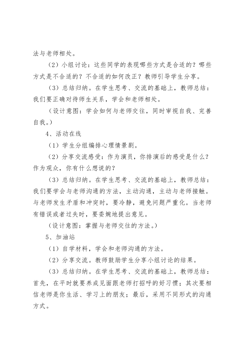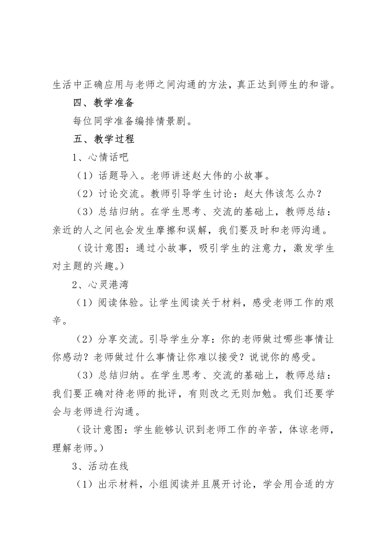 六年级心理健康教案:温暖一生的师爱一、设计背景学生对学科的兴趣和学生对教师的评价存在正比的关系。其中教师对学生的热情关怀是学生对学科形成积极态度的一个重要因素。教师对学生热情关怀,会使学生获得学习的自信心,而这正是学生坚持学习、热爱学习所必须的。师生关系影响学生学习的另一个方面是,师生关系本身就营造了一种课堂气氛,而课堂气氛本身是影响学习的。师生关系不良,课堂气氛容易紧张、死板,使得学生如坐针毡,惶恐不安或默然。而师生关系良好,课堂气氛温馨和谐,学生如沐春风,轻松愉快,思维活跃。快乐的情境是学生喜欢的、趋向的,而在不好的课堂气氛下,学生会不自觉地想要逃避。一个关心同学的老师,一个良好的上课氛围,对于学生上课的积极性具有很大的影响。二、教学目标1.正确认识师生之间发生的摩擦和误解。2.学会与老师沟通和交往的方法。3.能够体谅老师,理解老师,积极主动地与老师沟通和交往。三、教学重难点教学重点:正确认识师生之间发生的摩擦和误解。教学难点:让学生克服紧张、拘谨的心态,在日常的学习