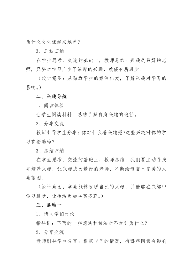 六年级心理健康教案:兴趣为学习导航此内容为付费资源,请付费后查看