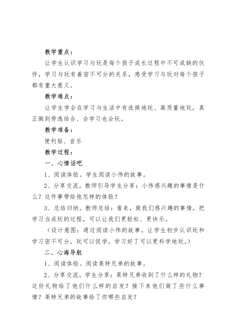 三年级心理健康教案:会学习也会玩此内容为付费资源,请付费后查看
