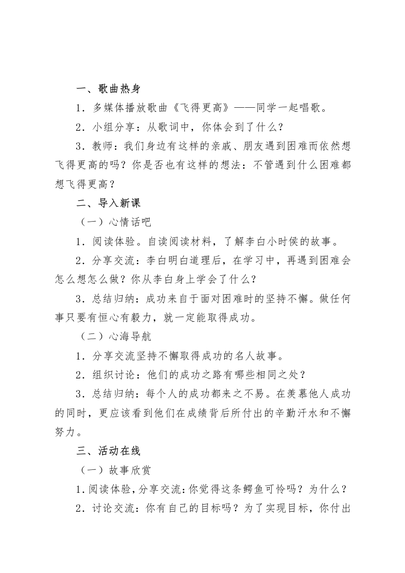 四年级心理健康教案:我坚持,我成功此内容为付费资源,请付费后查看