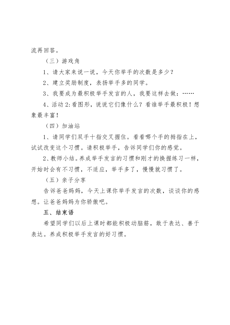 一年级心理健康教案:我要举手发言此内容为付费资源,请付费后查看