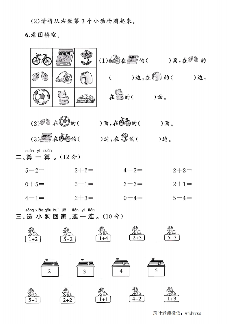 2025北师大版一年级数学上册第二单元测试卷(小学教育)tangqi884天前发布关注私信18.72MB8页0227 第1页 / 共8页 第2页 / 共8页 第3页 / 共8页 试读已结束,还剩5页,您可下载完整版后进行离线阅读 2025北师大版一年级数学上册第二单元测试卷(小学教育)此内容为付费资源,请付费后查看¥9.9¥19.9VIP会员免费立即购买您当前未登录!建议登陆后购买,可保存购买订单付费资源© 版权声明本站是一个信息分享及获取的平台,不确保部分用户上传资料的来源及知识产权归属,资料由老师投稿,公开渠道整理,网友上传,如果侵犯到您的权益,请联系客服删除THE END教师资料 文本预览 2025北师大版一年级数学上册单元测试卷第二单元测试卷时间:60分钟满分:100分+10分题号三四五六附加题总分孙得分tian yi tian一、填一填。(每空1分,共32分)弥1.3+2=(),读作(封2297靠3.照样子,填一填。线内2·不!?条要管每次少条,最后一个鱼缸里应该有条鱼。毁:5.数一数,填一填。题☒(1)从左数排第(),它前面有()个小动物,后面有()个小动物。落叶老师微信:wjdyyss 查看更多 收起部分 喜欢就支持一下吧点赞7 分享QQ空间微博QQ好友海报分享复制链接收藏