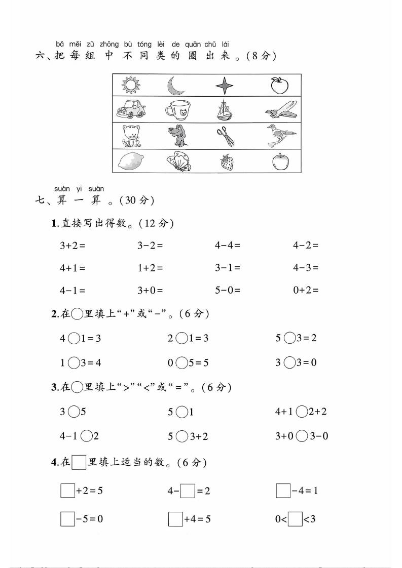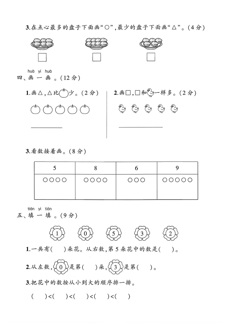 2025北师大版一年级数学上册期中测试卷(落叶老师)tangqi884天前发布关注私信7.76MB8页03613 第1页 / 共8页 第2页 / 共8页 第3页 / 共8页 试读已结束,还剩5页,您可下载完整版后进行离线阅读 2025北师大版一年级数学上册期中测试卷(落叶老师)此内容为付费资源,请付费后查看¥9.9¥19.9VIP会员免费立即购买您当前未登录!建议登陆后购买,可保存购买订单付费资源© 版权声明本站是一个信息分享及获取的平台,不确保部分用户上传资料的来源及知识产权归属,资料由老师投稿,公开渠道整理,网友上传,如果侵犯到您的权益,请联系客服删除THE END教师资料 文本预览 2025北师大版一年级数学上册期中测试卷期中测试卷罪检测时间:60分钟满分:100分+10分题号二三四五六七八附加题总分得分弥kàn tu xieěshù一、看图写数。(8分)毁封80都蕊蓝线8燕燕热密内……蠻不suan yi suanlian yi lian二、算一算,连一连。(8分)要3-21+42+15-3答靠题3+24-12-1shǔyishǔbr yi bi三、数一数,比一比。(8分)1.在多的后面画“V”。(2分)2.在少的后面画“√”。(2分)因000●000000栏□o□ 查看更多 收起部分 喜欢就支持一下吧点赞13 分享QQ空间微博QQ好友海报分享复制链接收藏