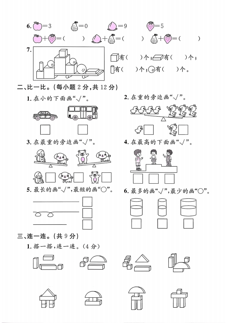 2025冀教版一年级数学上册期中测试卷(落叶老师)此内容为付费资源,请付费后查看