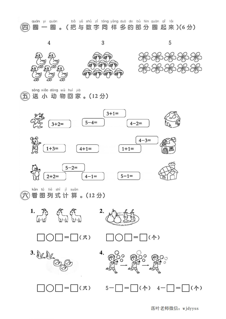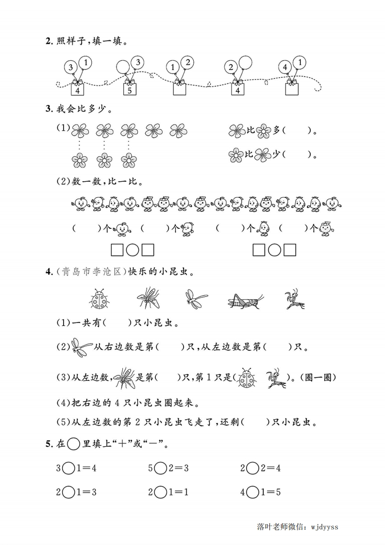 2025青岛63制一年级数学上册第一单元测试卷(小学教育)tangqi884天前发布关注私信0.95MB5页0485 第1页 / 共5页 第2页 / 共5页 第3页 / 共5页 试读已结束,还剩2页,您可下载完整版后进行离线阅读 2025青岛63制一年级数学上册第一单元测试卷(小学教育)此内容为付费资源,请付费后查看¥9.9¥19.9VIP会员免费立即购买您当前未登录!建议登陆后购买,可保存购买订单付费资源© 版权声明本站是一个信息分享及获取的平台,不确保部分用户上传资料的来源及知识产权归属,资料由老师投稿,公开渠道整理,网友上传,如果侵犯到您的权益,请联系客服删除THE END教师资料 文本预览 2025青岛63制一年级数学上册单元测试卷第一单元测试卷密⊙测试时间:40分钟⊙满分:100分+卷面:5分评价毁shu yi shu yongbido shi dui ying de ge shu数一数,用表示对应的个数。(8分)款彩彩封kan tu xie shu看图写数。(5分)器ano-o@2xiang yi xiang tian yi tian想一想,填一填。(34分)爵1.按顺序写数。线AAAA落叶老师微信:wjdyyss 查看更多 收起部分 喜欢就支持一下吧点赞5 分享QQ空间微博QQ好友海报分享复制链接收藏