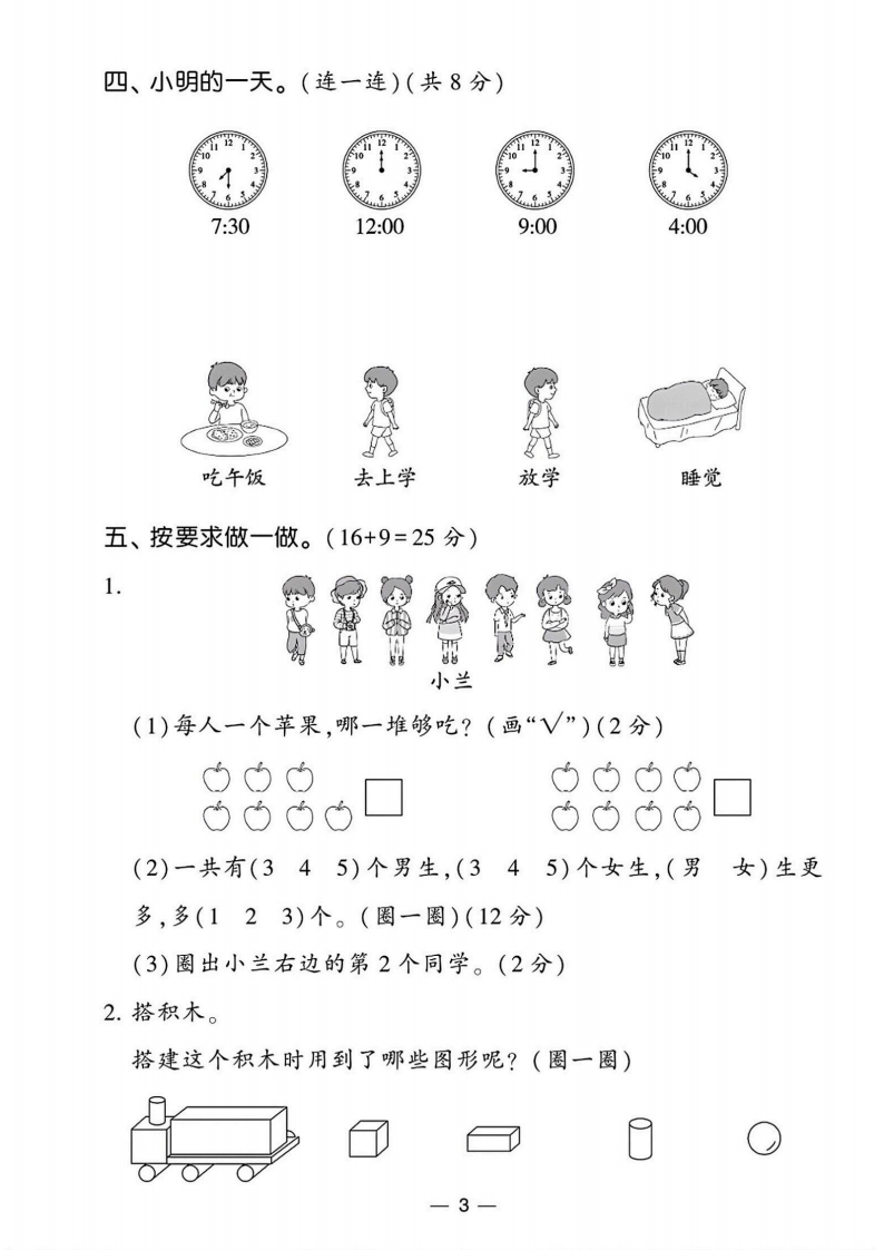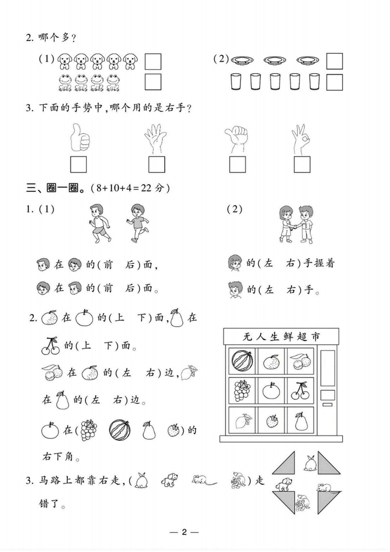 2025人教版一年级上册数学游戏达标测试卷(1)(2)tangqi883天前发布关注私信1MB5页0397 第1页 / 共5页 第2页 / 共5页 第3页 / 共5页 试读已结束,还剩2页,您可下载完整版后进行离线阅读 2025人教版一年级上册数学游戏达标测试卷(1)(2)此内容为付费资源,请付费后查看¥9.9¥19.9VIP会员免费立即购买您当前未登录!建议登陆后购买,可保存购买订单付费资源© 版权声明本站是一个信息分享及获取的平台,不确保部分用户上传资料的来源及知识产权归属,资料由老师投稿,公开渠道整理,网友上传,如果侵犯到您的权益,请联系客服删除THE END教师资料 文本预览 2025秋季人教版一年级上册数学测试卷数学游戏达标测试卷时间:40分钟满分:100+10分题序二三四五六附加题总分得分中粉一、数一数,连一连。(共10分)》强812345678910盞器器二、选一选。(在正确的里画“√”)(6+6+3=15分)1.谁高?(1)(2)蓉米!1 查看更多 收起部分 喜欢就支持一下吧点赞7 分享QQ空间微博QQ好友海报分享复制链接收藏