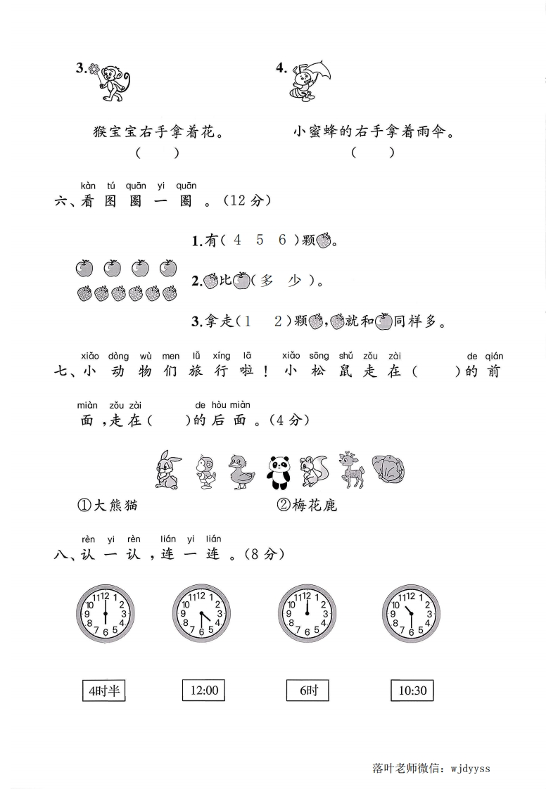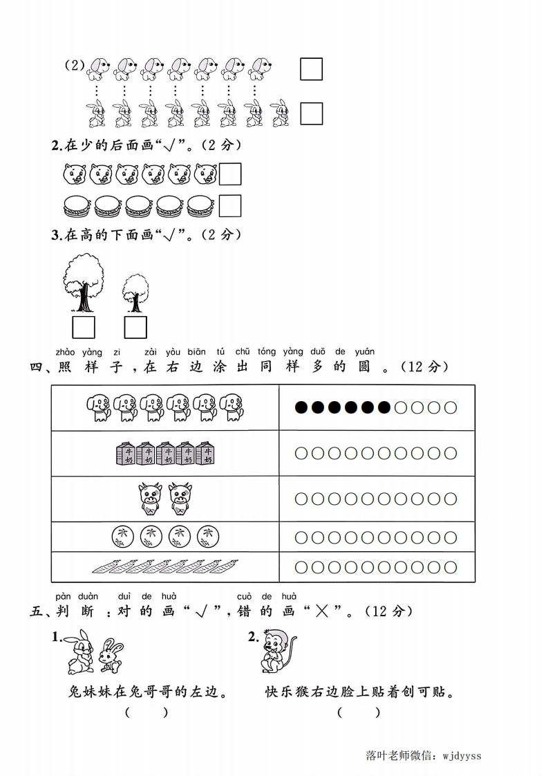 2025人教版一年级数学上册单元测试卷数学游戏测试卷罪检测时间:60分钟满分:100分+10分题序四五六0八九附加题总分得分zhao yangkan shu quan tu xing弥一、照样子,看数圈图形。(12分)3846毁封PP9P国线EPPPkan shùquanyiquan内二、看数圈一圈。(16分)童罗见pp不罗罗9要(456)(789)(8910)(678)答咫靠题男男8思您思觉(456)(345)(456)(8910)yibi三、比一比。(8分)1.在多的后面画“√”。(4分)(1)@@@@@@多型罗墨口落叶老师微信:wjdyyss