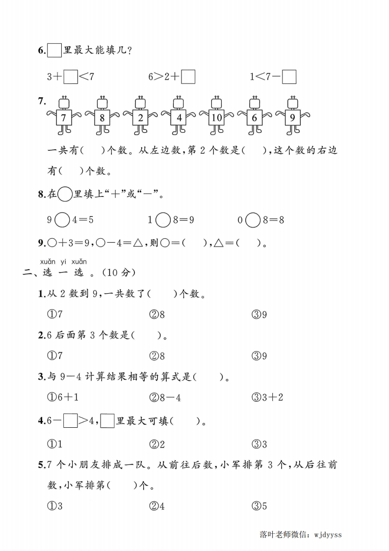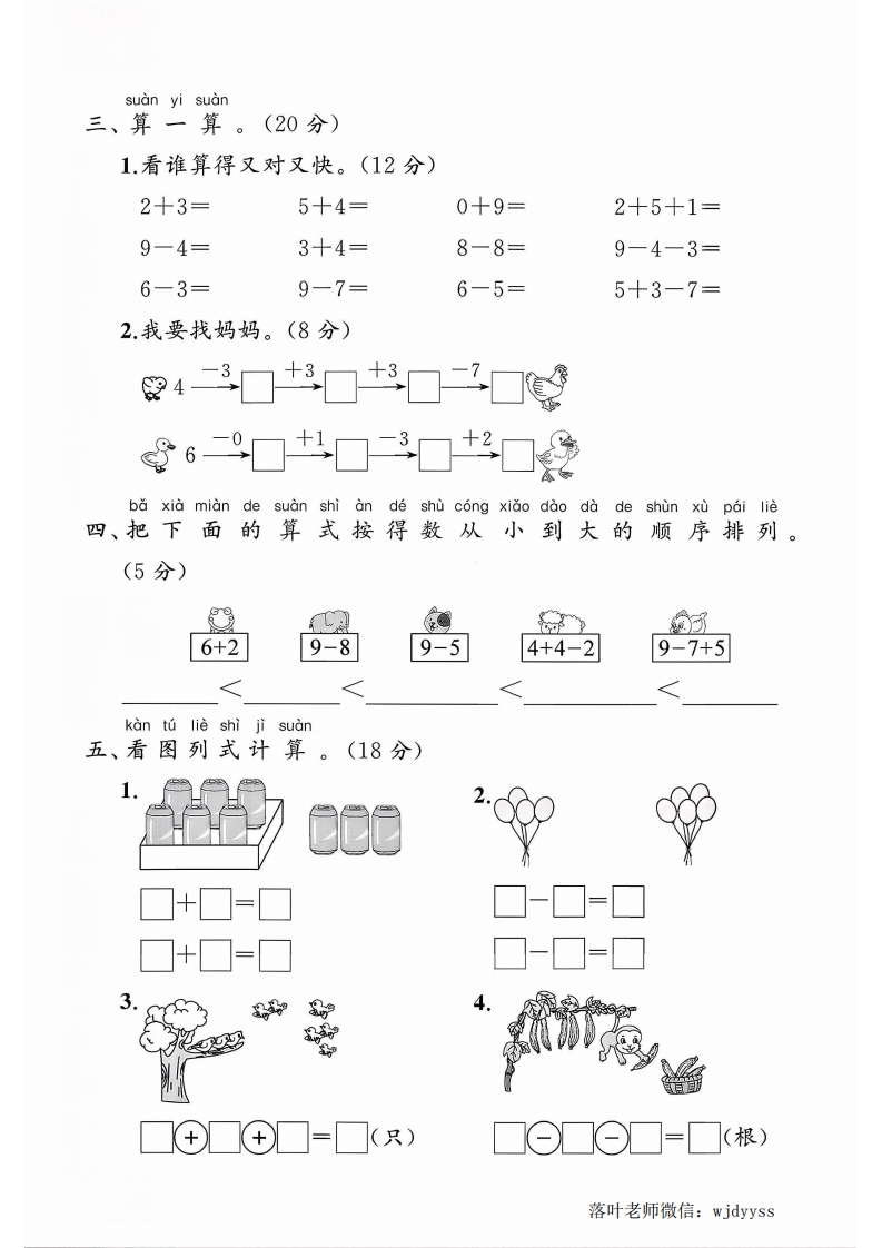 2025苏教版一年级数学上册第二单元测试卷(落叶老师)tangqi884天前发布关注私信7.24MB8页03412 第1页 / 共8页 第2页 / 共8页 第3页 / 共8页 试读已结束,还剩5页,您可下载完整版后进行离线阅读 2025苏教版一年级数学上册第二单元测试卷(落叶老师)此内容为付费资源,请付费后查看¥9.9¥19.9VIP会员免费立即购买您当前未登录!建议登陆后购买,可保存购买订单付费资源© 版权声明本站是一个信息分享及获取的平台,不确保部分用户上传资料的来源及知识产权归属,资料由老师投稿,公开渠道整理,网友上传,如果侵犯到您的权益,请联系客服删除THE END教师资料 文本预览 2025苏教版一年级数学上册单元测试卷第二单元测试卷器检测时间:60分钟满分:100分+10分题序二三四五六附加题总分得分弥tian yi tian一、填一填。(34分)封1.看图写数。线自自含含⑧含⑧⑧内()不2.按规律填数。985215要3.与6相邻的数是()和()。答4》是》母》是》是戢题郭勃勃舒新勃得比部多()只,部比得少()只。5.在(○里填上“>”“<”或“=”。8○9○762+4○99-2○2+485○493+66-3○2+5落叶老师微信:wjdyyss 查看更多 收起部分 喜欢就支持一下吧点赞12 分享QQ空间微博QQ好友海报分享复制链接收藏