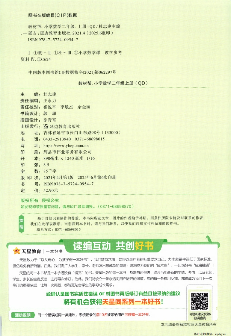 25秋二年级上册青岛63制数学教材帮tangqi883天前发布关注私信76.50MB138页03811 第1页 / 共138页 第2页 / 共138页 第3页 / 共138页 试读已结束,还剩135页,您可下载完整版后进行离线阅读 25秋二年级上册青岛63制数学教材帮此内容为付费资源,请付费后查看¥9.9¥19.9VIP会员免费立即购买您当前未登录!建议登陆后购买,可保存购买订单付费资源© 版权声明本站是一个信息分享及获取的平台,不确保部分用户上传资料的来源及知识产权归属,资料由老师投稿,公开渠道整理,网友上传,如果侵犯到您的权益,请联系客服删除THE END教师资料 文本预览 上课认真听1年第7次天星教育下课练天星2025秋新教材视频讲解主编杜志建教材帮名师辅导胜家教00预习复习更高效☑同步课本,预习、复习、练习一本通视频讲小学数学⊙每课都有视频讲解,孩子自己就能学(六三制含教材习题参考答案二年级上册QD⊙课本名师亲自编写,学习考试更精准(本书末尾】S延边教育出版社落叶老师微信:wjdyyss 查看更多 收起部分 喜欢就支持一下吧点赞11 分享QQ空间微博QQ好友海报分享复制链接收藏