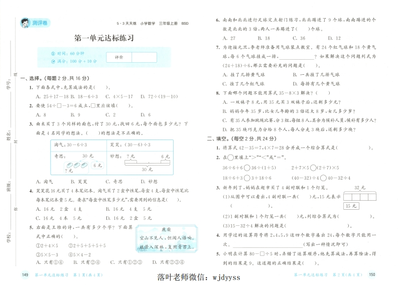 25秋北师大版3上数学《53天天练》试卷tangqi883天前发布关注私信57.57MB32页0478 第1页 / 共32页 第2页 / 共32页 第3页 / 共32页 试读已结束,还剩29页,您可下载完整版后进行离线阅读 25秋北师大版3上数学《53天天练》试卷此内容为付费资源,请付费后查看¥9.9¥19.9VIP会员免费立即购买您当前未登录!建议登陆后购买,可保存购买订单付费资源© 版权声明本站是一个信息分享及获取的平台,不确保部分用户上传资料的来源及知识产权归属,资料由老师投稿,公开渠道整理,网友上传,如果侵犯到您的权益,请联系客服删除THE END教师资料 文本预览 2025小儿邮测评卷小学数学三年级上册BSD之款种联档落叶老师微信:wjdyyss 查看更多 收起部分 喜欢就支持一下吧点赞8 分享QQ空间微博QQ好友海报分享复制链接收藏