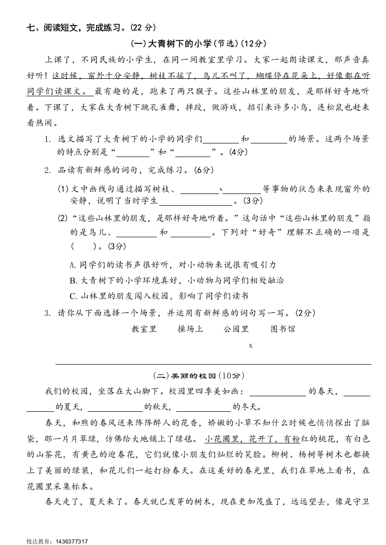 2025人教版三年级上册语文第一单元测试卷(53)(1)此内容为付费资源,请付费后查看