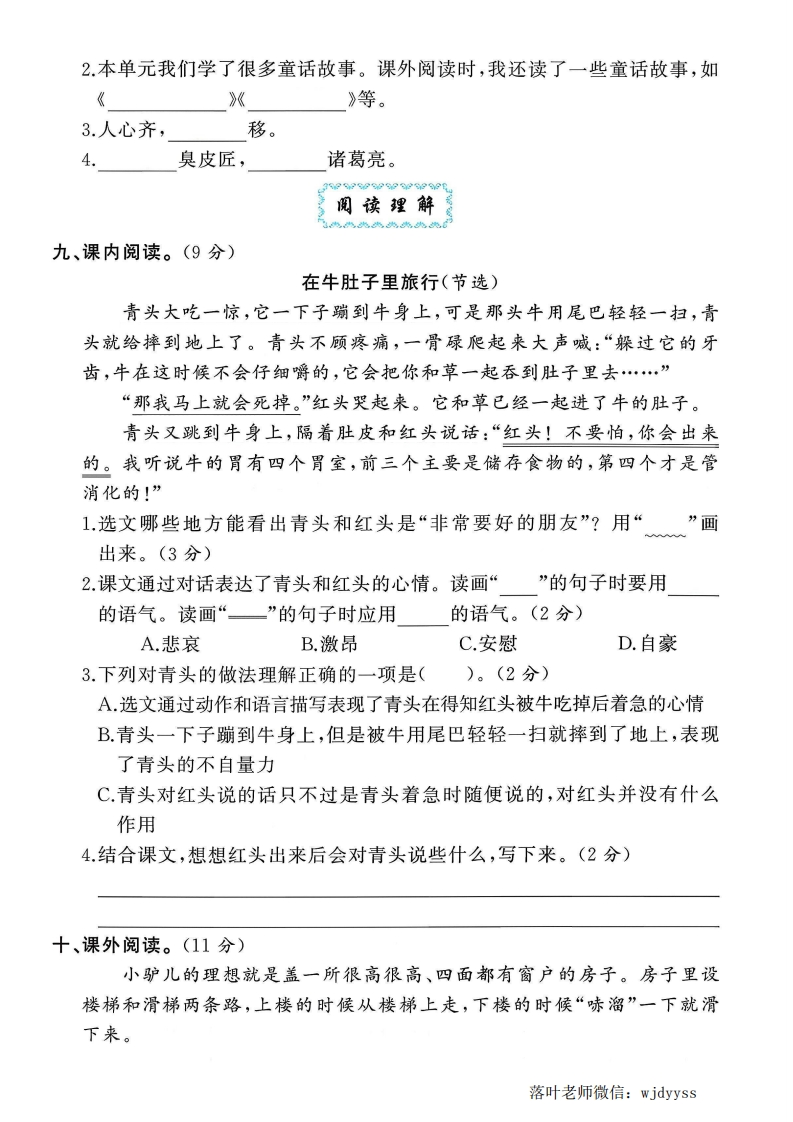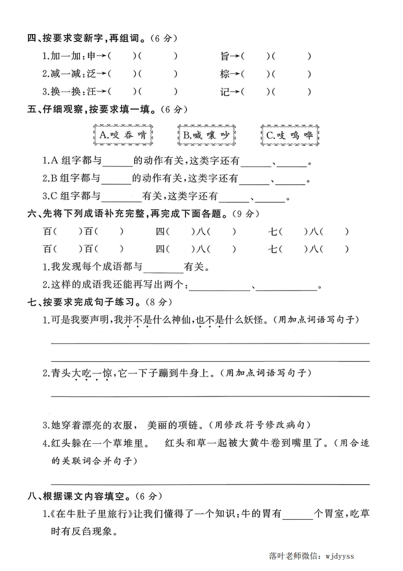 2025人教版三年级语文上册第四单元测试卷(小学教育)此内容为付费资源,请付费后查看