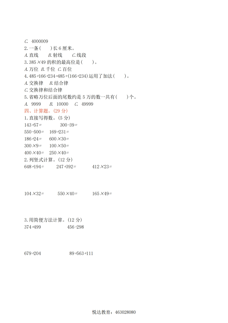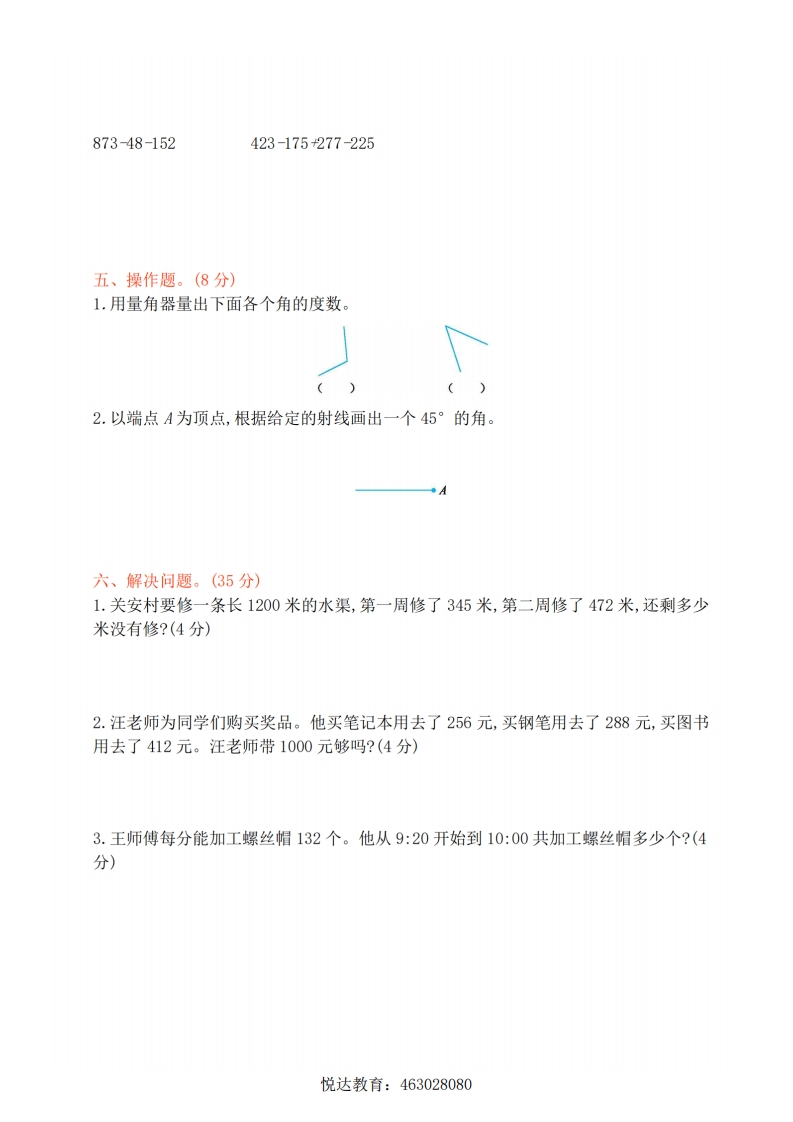 西师大版数学四年级上册期中检测卷_00此内容为付费资源,请付费后查看