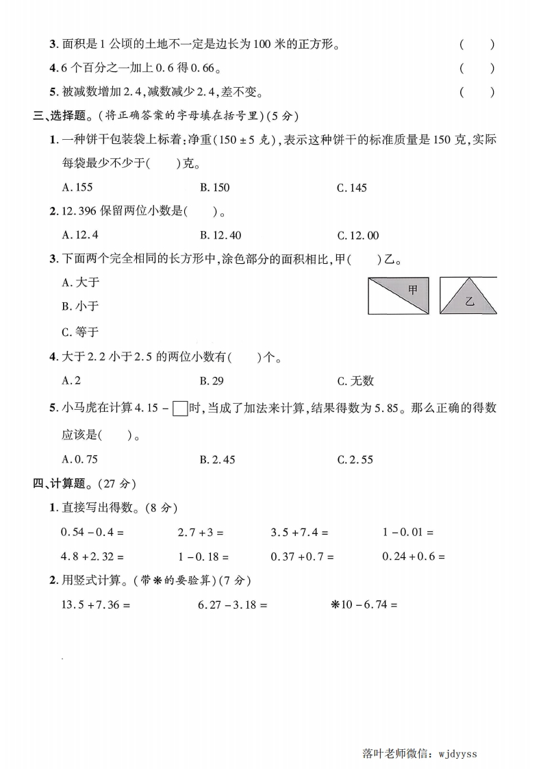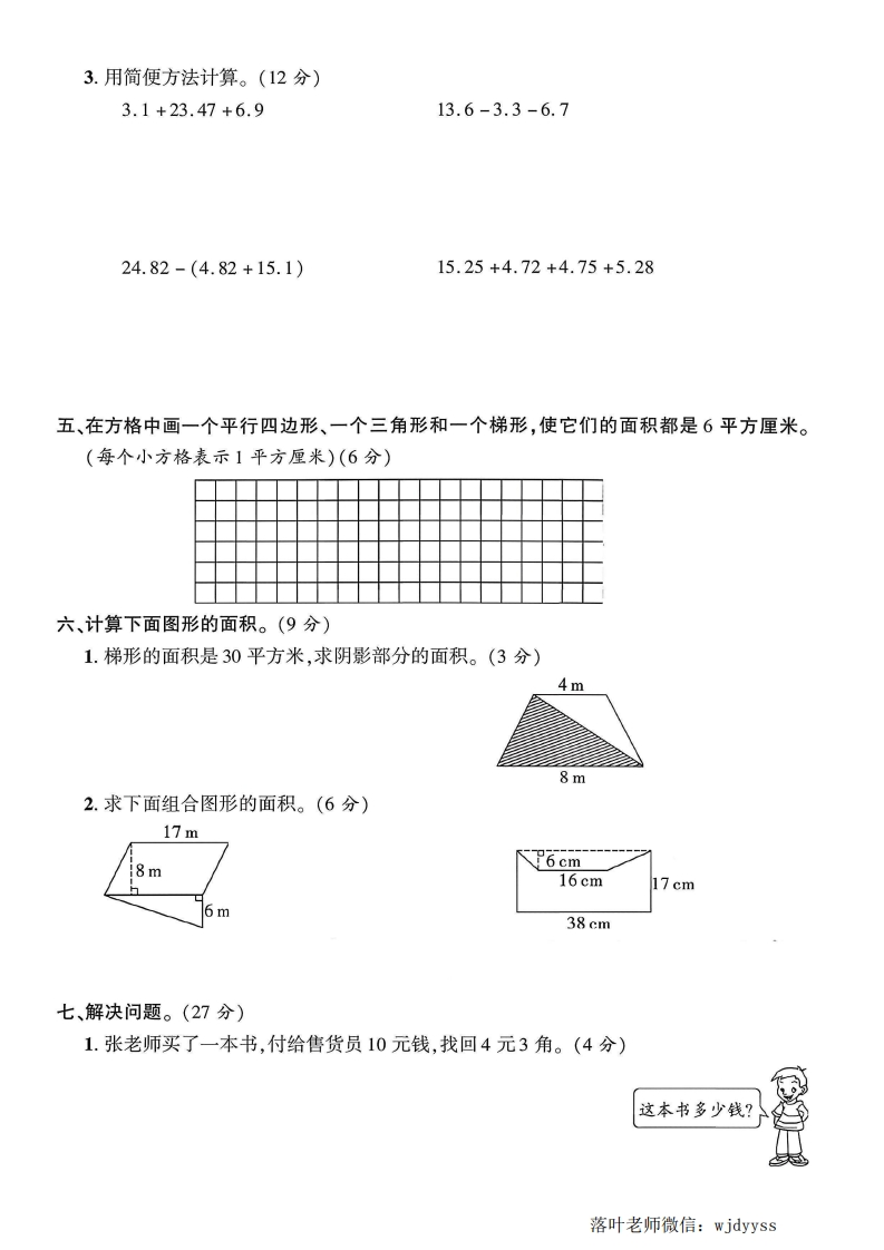 2025苏教版五年级数学上册期中测试卷(落叶老师)此内容为付费资源,请付费后查看