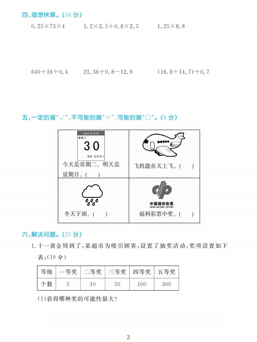 五年级上册数学人教版第四单元测试卷此内容为付费资源,请付费后查看