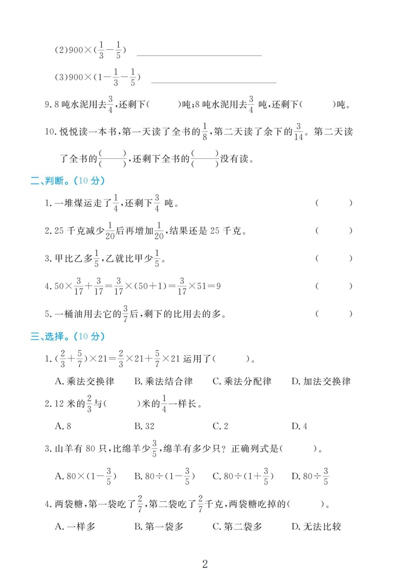 北师版六年级上册数学第二单元测试卷此内容为付费资源,请付费后查看