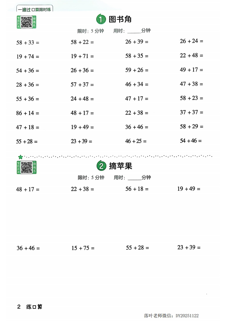 25秋《一遍过-口算限时练》北师数学2上第五单元测试卷tangqi88昨天发布关注私信22.61MB33页04512 第1页 / 共33页 第2页 / 共33页 第3页 / 共33页 试读已结束,还剩30页,您可下载完整版后进行离线阅读 25秋《一遍过-口算限时练》北师数学2上第五单元测试卷此内容为付费资源,请付费后查看¥9.9¥19.9VIP会员免费立即购买您当前未登录!建议登陆后购买,可保存购买订单付费资源© 版权声明本站是一个信息分享及获取的平台,不确保部分用户上传资料的来源及知识产权归属,资料由老师投稿,公开渠道整理,网友上传,如果侵犯到您的权益,请联系客服删除THE END教师资料 文本预览 天星教育上课认真听下课练天星>>>更多新颖题一遍议3区6关高效分层作业口算限时练更注重算法和数感的培养1+3=487-5=2100二算法算理小学数学▣限时口算二年级上册BSD智能批改+错题本扫码对答案落叶老师微信:DY20251122 查看更多 收起部分 喜欢就支持一下吧点赞12 分享QQ空间微博QQ好友海报分享复制链接收藏