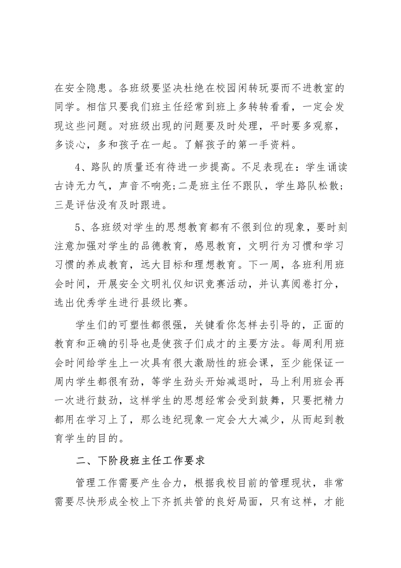 校长在班主任工作会议上讲话对违纪现象处理得不严,工作方面落实得还很不够,对待管理工作的认识还没有真正提高上去开学以来,无论是德育活动的开展,还是学生日常规范管理、校园安全管理等工作都比较扎实,成效显著,各项工作都取得了较好成绩,获得了校领导的肯定与表扬,这与我们在座的每一位工作人员的辛勤工作是分不开的。今天按照学校整体工作部署我们在此召开本学期第一次班主任、级部主任会议,主要目的是如何做好下一步工作,进一步强化常规管理,提高德育工作实效。本次会议分为6个部分,两个阶段:第一阶段:一是刘主任安排总务事宜。二xx主任安排“平安校园”建设事宜;三是xx主任安排相关工作。四是强调几件事。第二阶段:五是安排红领巾广播站事宜。六是xx安排校车事宜。一、当前亟待解决的问题