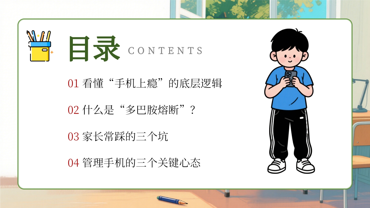 【通用】家长会【戒断孩子手机上瘾】1tangqi884小时前发布关注私信80.76MB25页03915 第1页 / 共25页 第2页 / 共25页 第3页 / 共25页 第4页 / 共25页 第5页 / 共25页 试读已结束,还剩20页,您可下载完整版后进行离线阅读 【通用】家长会【戒断孩子手机上瘾】1此内容为付费资源,请付费后查看¥9.9¥19.9VIP会员免费立即购买您当前未登录!建议登陆后购买,可保存购买订单付费资源© 版权声明本站是一个信息分享及获取的平台,不确保部分用户上传资料的来源及知识产权归属,资料由老师投稿,公开渠道整理,网友上传,如果侵犯到您的权益,请联系客服删除THE ENDPPT课件教师资料 文本预览 9通用实用型·家长会戒断孩子手机上瘾用多巴胺熔断法守护成长 查看更多 收起部分 喜欢就支持一下吧点赞15 分享QQ空间微博QQ好友海报分享复制链接收藏