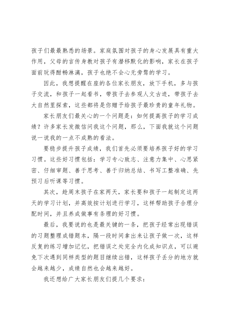 学校家长会上,校长(班主任)讲话,每一位参加的家长都是好样的,您为孩子树立了诚信守时的好榜样,让我们把热烈的掌声送给自己尊敬的各位家长朋友们,大家上午好感谢各位家长在百忙之中抽身前来我校参加家长会,大家如此支持我们学校的工作,我代表我们所有老师对大家的到来表示欢迎!我相信在各位家长的积极参与下,我们本次家长会必将获得圆满成功,我们的孩子在家校的共同培育下,一定会健康成长并在不久的将来成为国之栋梁。本次家长会的目的是,促进家校沟通,相互了解孩子在家校的表现,共同为孩子量身定制教育手段,听取家长意见,为家长积极参与学校的教育管理创造条件。总之一切为了孩子,一切为了把教育工作做好,一切为了提高孩子的学习成绩。作为班主任(校长),我今天想和各位家长交流以下几个问题。有专家曾撰文说“5+2=0”,其意思是说,孩子在学校接受了五天的积极教育后,周末在家两天就又沾染了各种不良习惯,使学校的教育成果近乎为零。当然,这里并不是批评家长朋友,你们一定比老师更希望自家的孩子成龙成凤,在教育孩子方面,主观上你们也绝对不想拖学校教育的后腿可我也要明确地告诉大家,“5+2=0”的相抵功效,必须引起我们的警惕。每天“996”的工作确实不轻松,因此回到家中,大家都想肆意地放松身心,于是爸爸打游戏,妈妈刷抖音或追剧便成为
