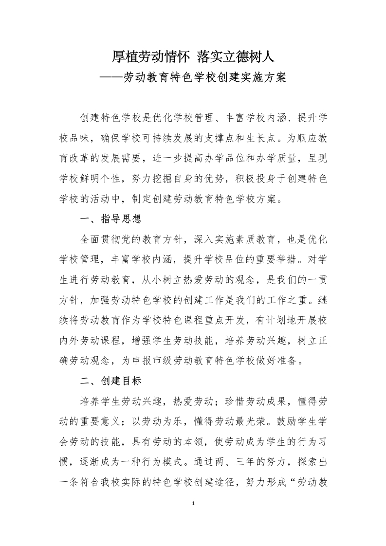 创建劳动教育特色学校实施方案此内容为免费资源,请登录后查看