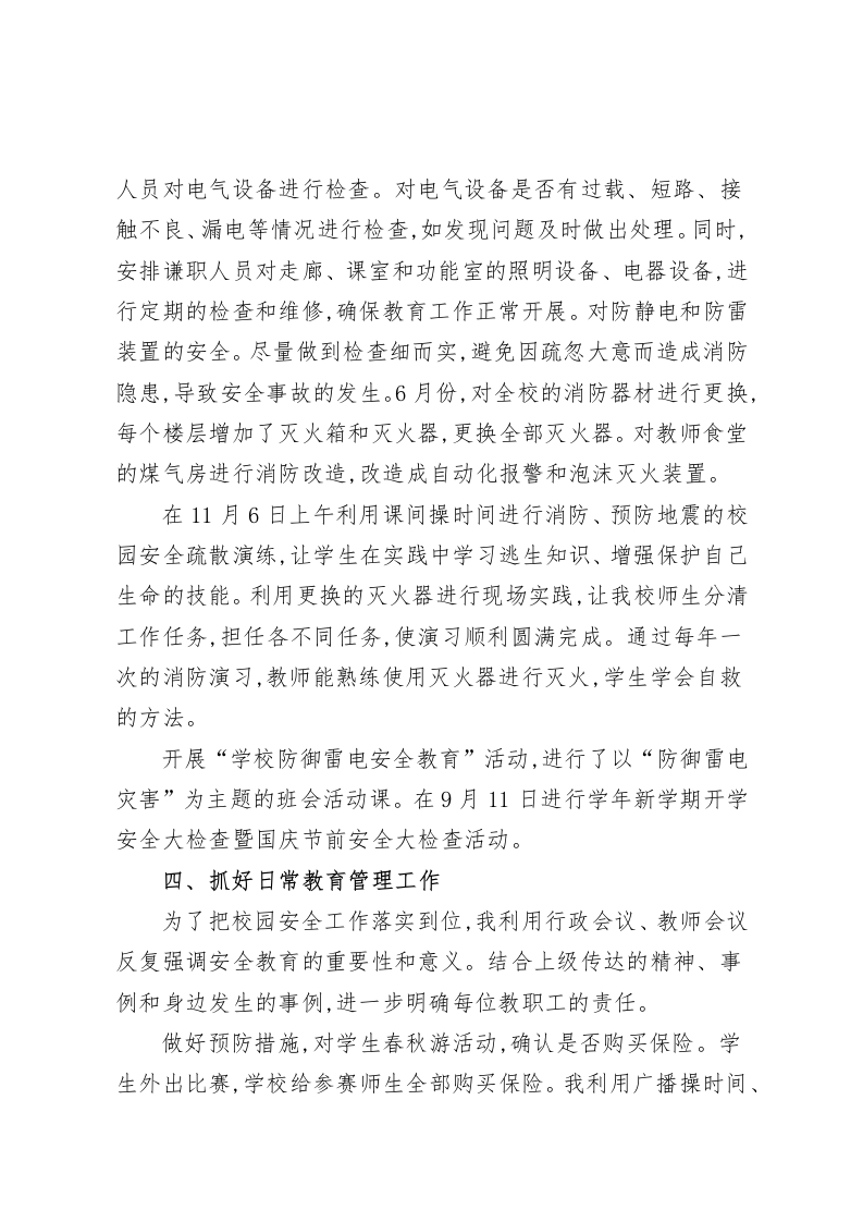 2025年度学校后勤副校长述职报告:力求把学校安全工作做得更细更到位尊敬的领导,各位同事:大家好!本年度我担任学校后勤副校长职务,分管学校德育、安全、后勤工作。根据上级有关规定,为进一步落实校园安全责任制,加强校园安全监督管理,防止重特大校园安全事故发生,消除安全隐患。我及时组织全校教师传达贯彻相关文件精神。组织学校安全教育工作小组,定期对学校的安全和管理工作及宣传教育工作进行全面的检查和整改。现将本年度我完成的工作总结如下:一、管理工作机构的落实在学校成立了安全和管理工作机构后,全面实施层级安全管理措施,层层落实责任,提高了安全工作的实效性。在校长的带领下,我和分管全安保卫干部、年级组长和班主任,对学校进行定时的检查,商讨学校可能存在的安全隐患。对学校所存在的安全隐患及时进行排除,做到以防为主,如发生事故直接责任人第一时间能到位,进行及时处理。二、加强师生的交通安全教育认真贯彻落实省、市、区各级主管部门关于学校安全工作的会议和文件精神,积极开展交通安全、消防安全进校园活动。学校利用国旗下讲话、晨会、专题讲座、校园广播站、宣传档