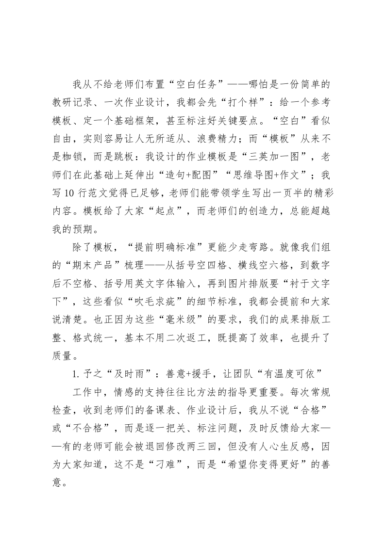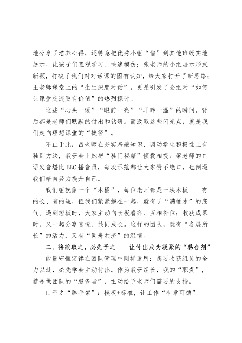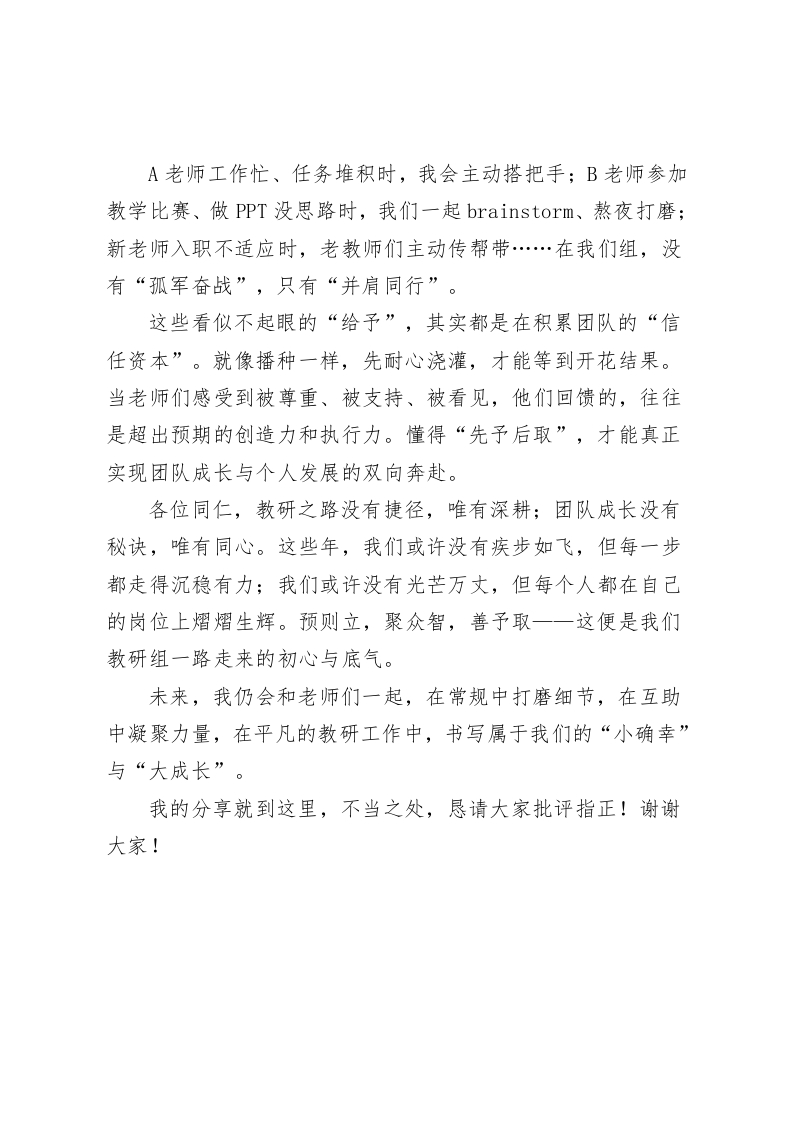 教研组长管理经验交流发言:深耕常规细水长流,凝聚微光共赴成长此内容为付费资源,请付费后查看