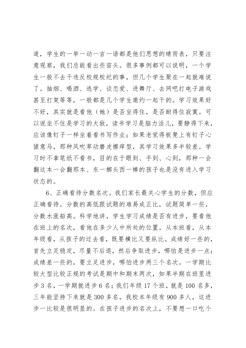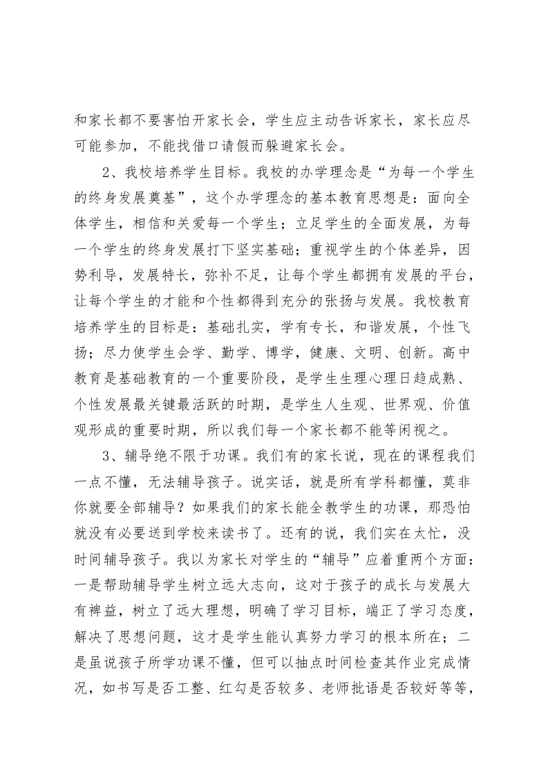 校长在家长会上讲话希望我们的学生和家长都不要害怕开家长会,学生应主动告诉家长,家长应尽可能参加,不能找借口请假而躲避家长会各位家长,老师们:首先,我代表全班所有任课教师对全体家长的到来表示热烈的欢迎和真诚的感谢!我们各位家长把孩子送到学校来,表明对我校的信任,但仅有信任还不够,还需要同学校和老师密切配合,共同加强教育管理。从我们家长决定孩子读普高起,多半就树立了一个远大或者说明确的目标,这个目标最终的实现需要我们大家共同努力。今天作为班主任老师,我利用这个机会,想跟家长们交换一下意见。我先谈几点意思,供家长们参考。1、明确家长会的意义。家长会不是告状会,不是老师向家长告学生的状,也不是家长告向老师告学生的状;家长会也不是埋怨会,不是老师埋怨家长在家没管好孩子,也不是家长埋怨老师在校没教好孩子。家长会应该是学校及老师同家长相互沟通的会,应该是相互交换教育管理的会,应该是共同商量如何把学生教育管理得更好的会。学生行为是否规范、思想是否进步、成绩是否提高等等有许多因素,如学生自身的具体情况、学校(教师)的教育管理、家庭教育的方式方法、社会的影响等等。家长会就是要通过教师与家长的相互沟通交流,尽力形成教育合力,从而收到事半功倍之效。所以我希望我们的学生