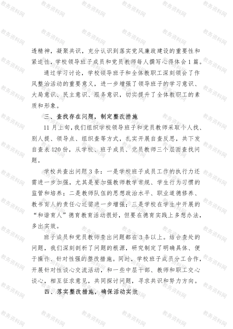 学校开展作风整治活动总结从学校和教师两个层面找问题抓整改此内容为付费资源,请付费后查看