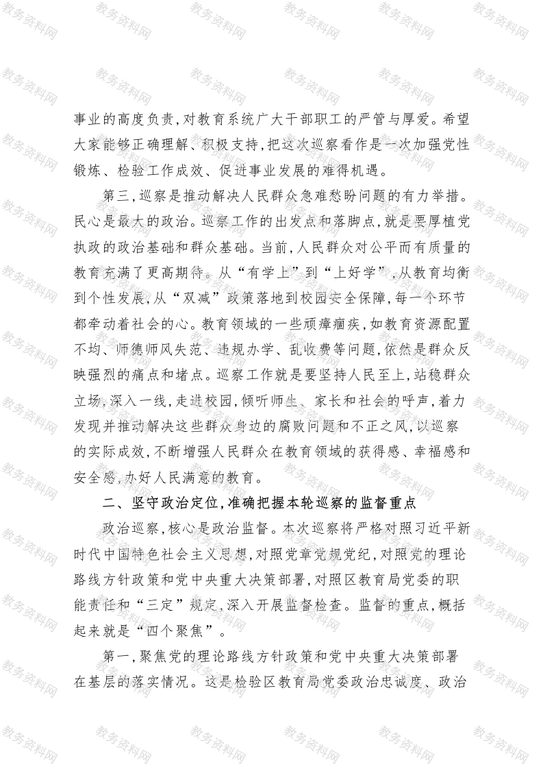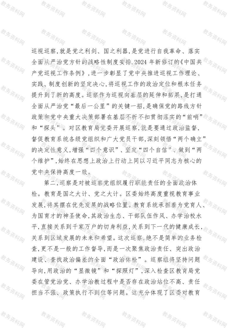 巡察组长在2025年区教育局党委巡察工作动员会上的讲话此内容为付费资源,请付费后查看